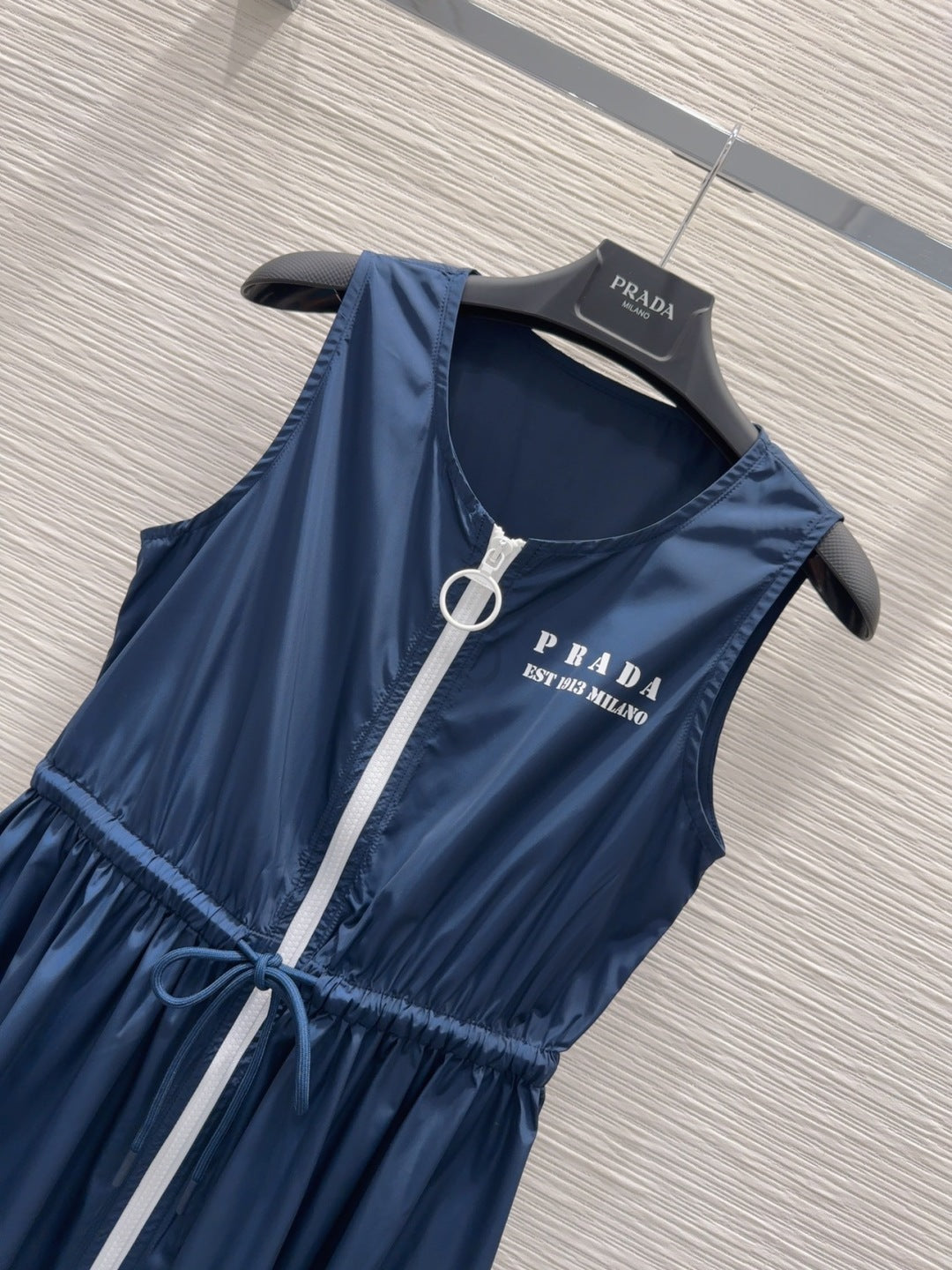 Prada 2025 Sleeveless Dress Navy Blue Polyester