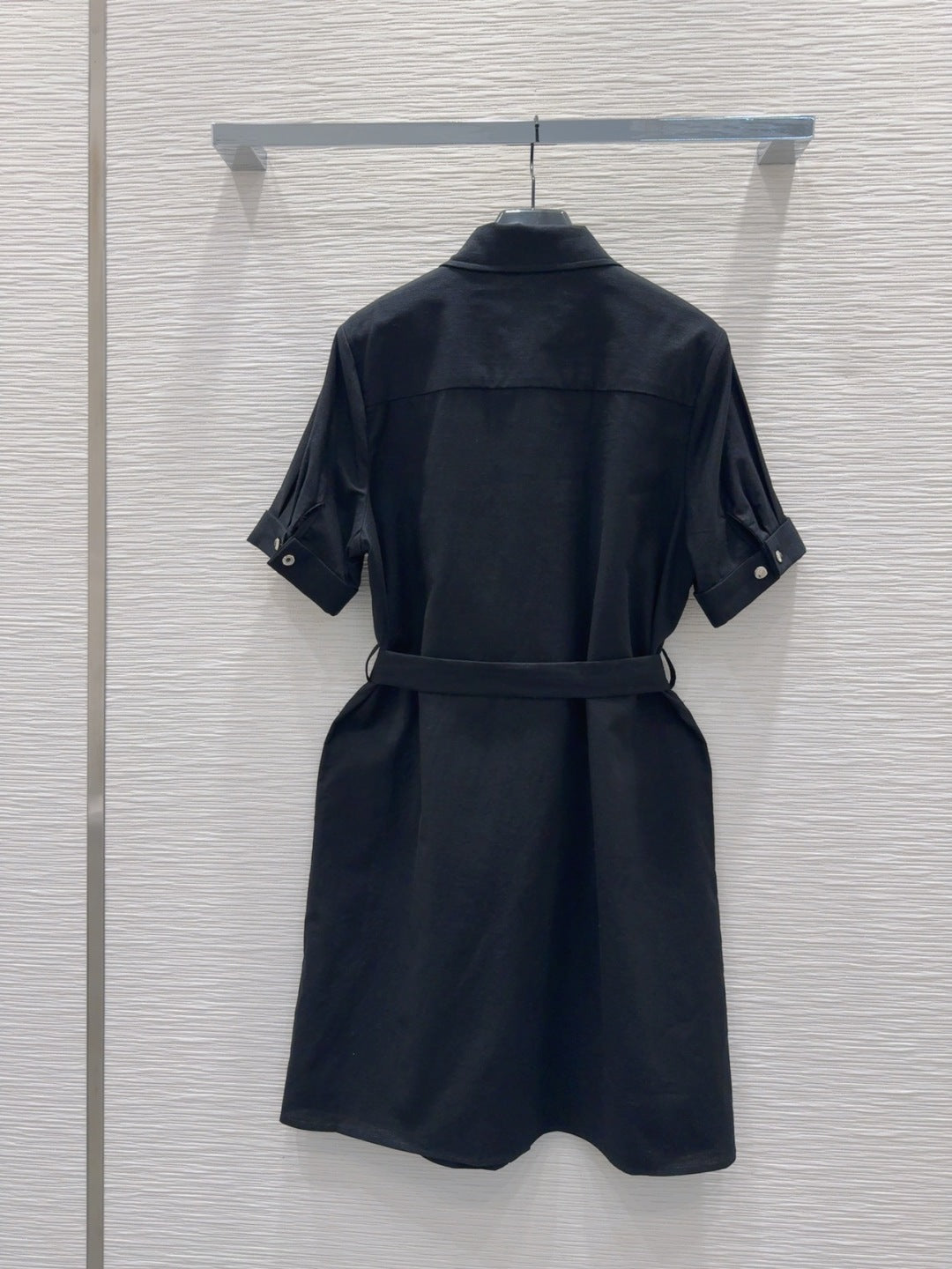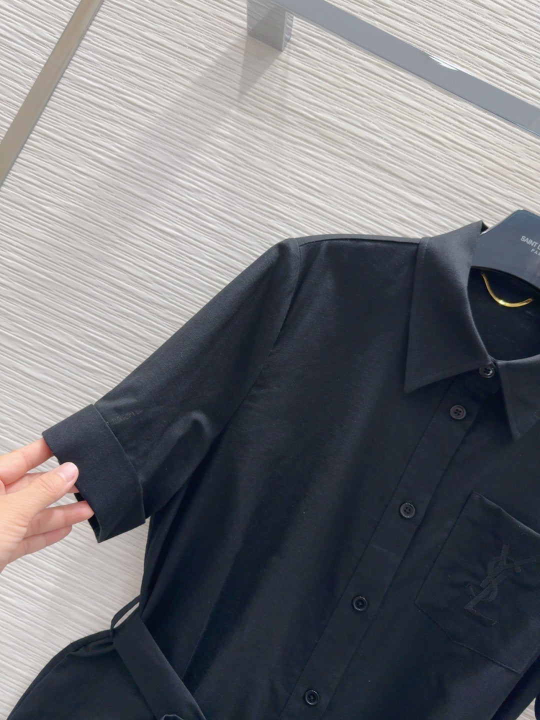 YSL 2025 Shirt Dress Black Flax Cotton