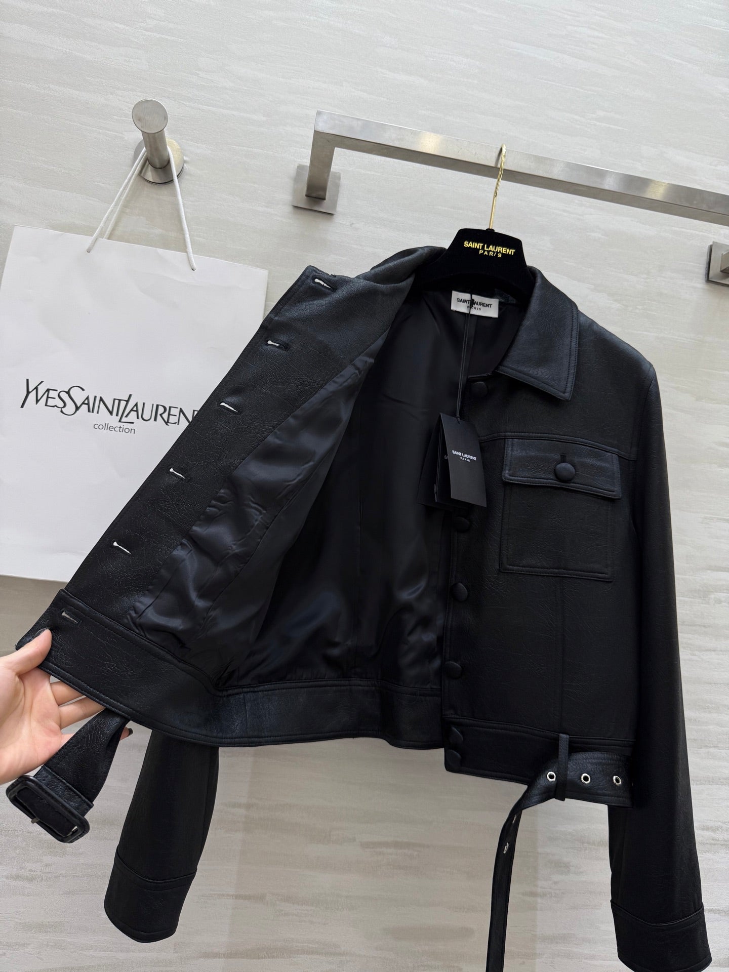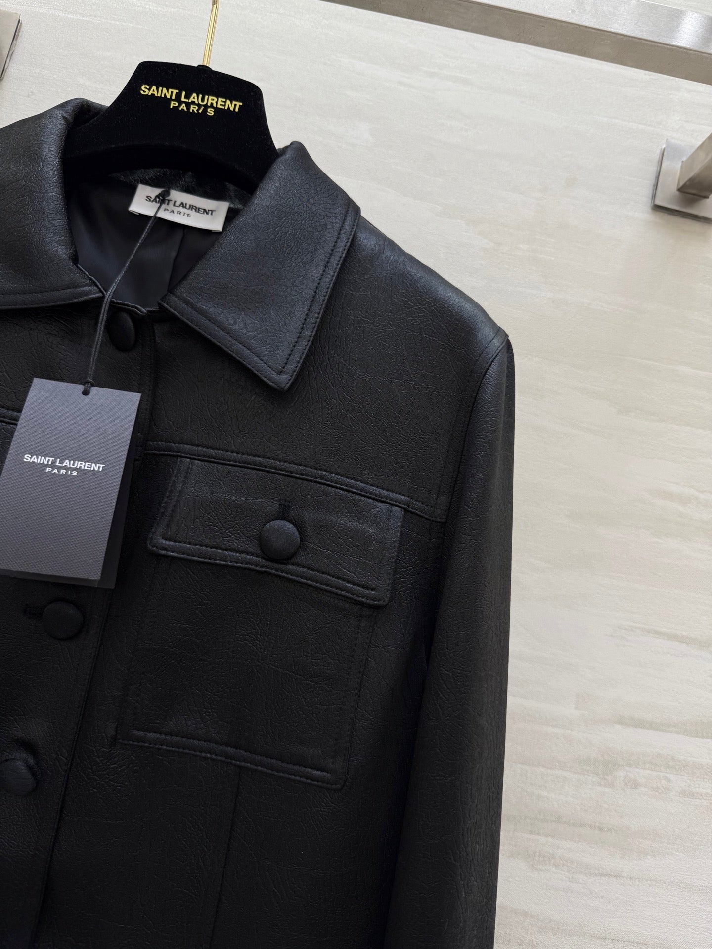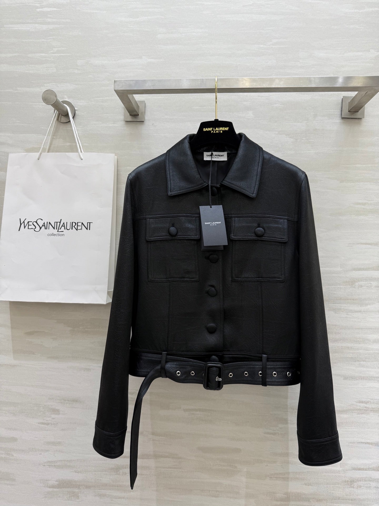YSL 25 Cracked Pleated Jacket Black Acetate