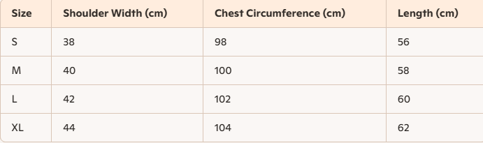 - For more information, please see the size guide below