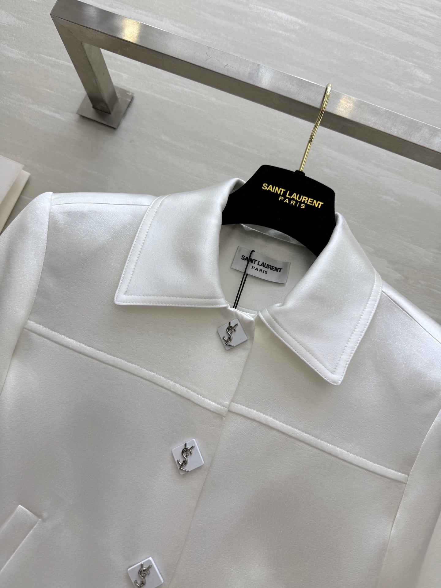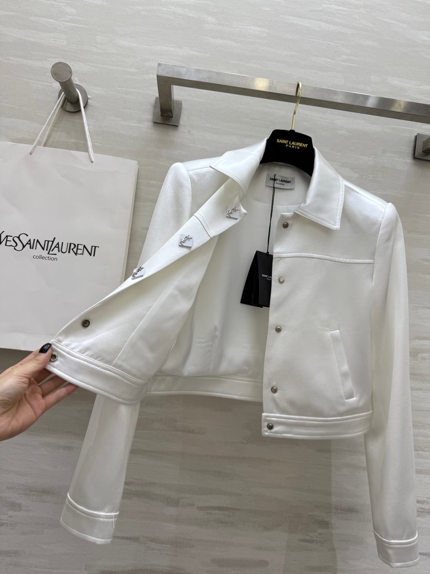 YSL 25 Short Jacket White Acetic Acid Cracked Fabric