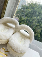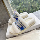 CD 25 Flat Slippers White Blue Wool 395569