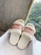 CD 25 Flat Slippers White Pink Wool 395568
