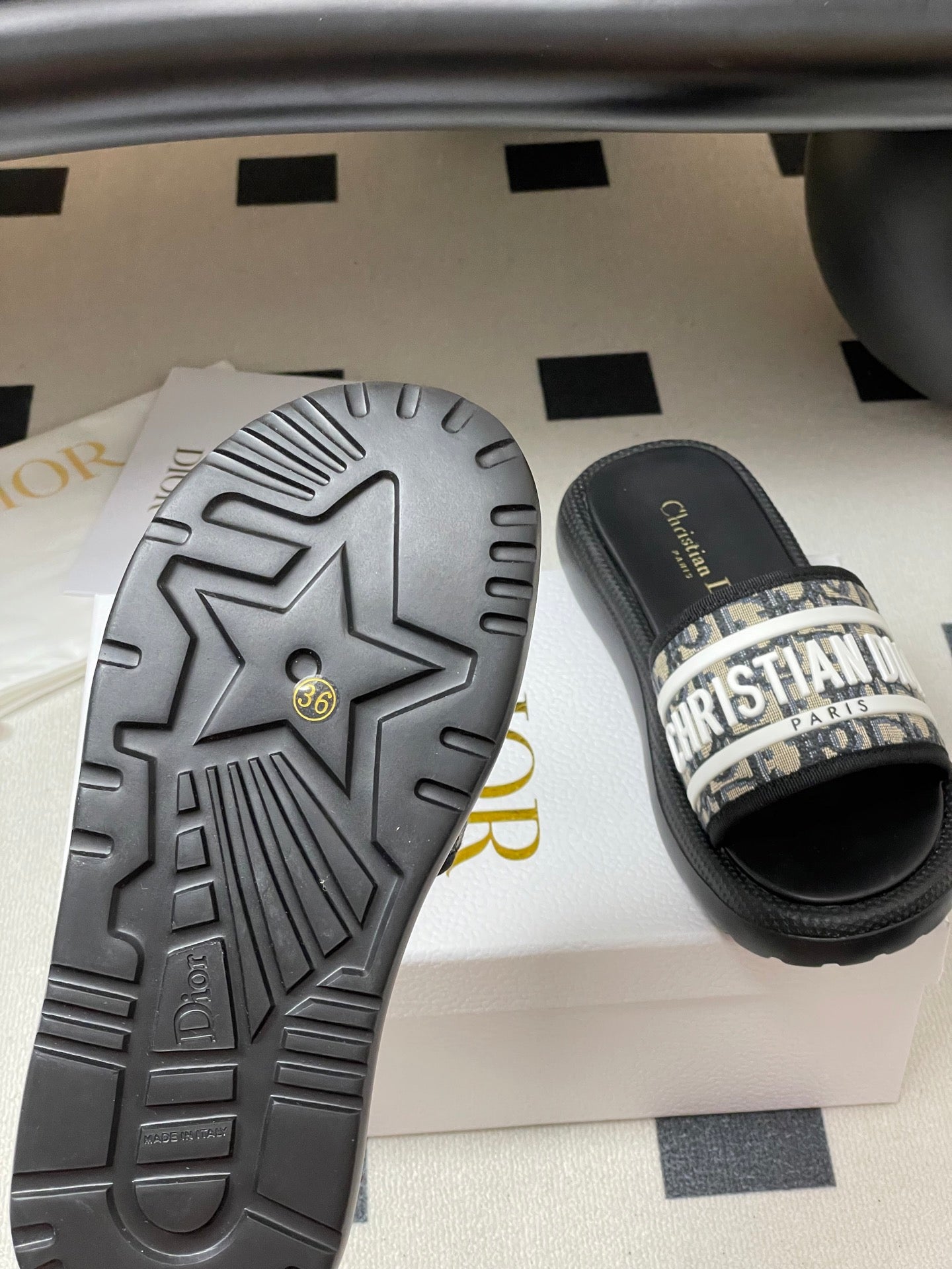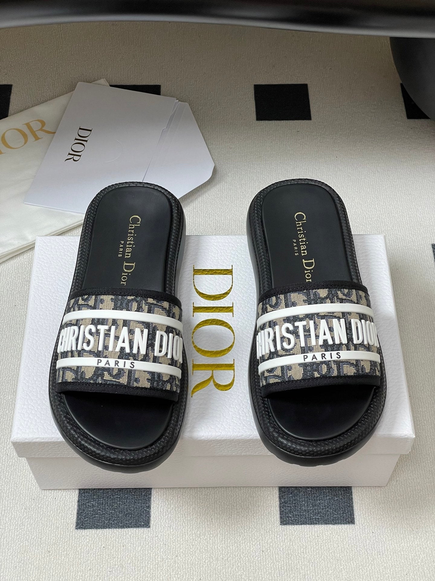 CD 25 Slippers Black White Fabric 394063