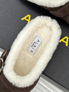 Alaia 25WF slippers belt buckle chocolate brown suede wool 472231