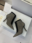 Dior 2025 Capture Heeled Ankle Boot Black Beige Mesh Sheepskin 508531