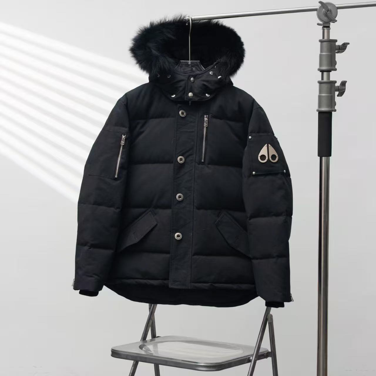 Moose Knuckles Shearling Jacket Black Polyester Down