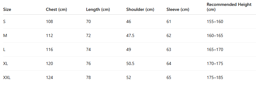 Size : S, M, L, XL, XXL