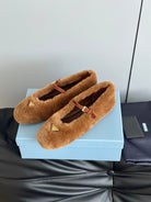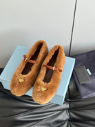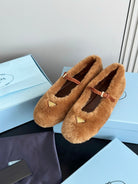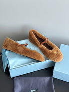 Prada 25s Mary Jane Ballet Flats Caramel Brown Wool 538455