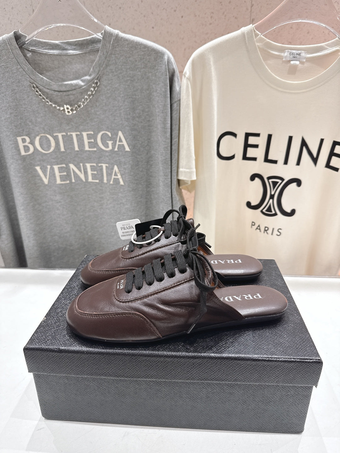Prada 25s mule dark brown sheepskin 535501