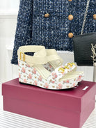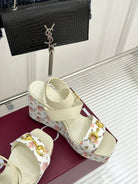 GC Floral Platform Wedge Sandal White Mix Flower lambskin
