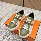 HM Casual Sneakers Sliver Buckle Olive With White Leather