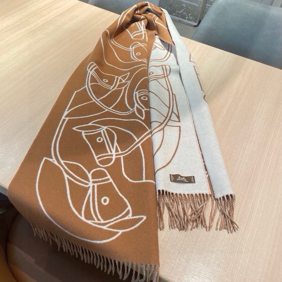 Casaque Entrelacs Equestres Scarf 195 CM Brown Mix White Cashmere
