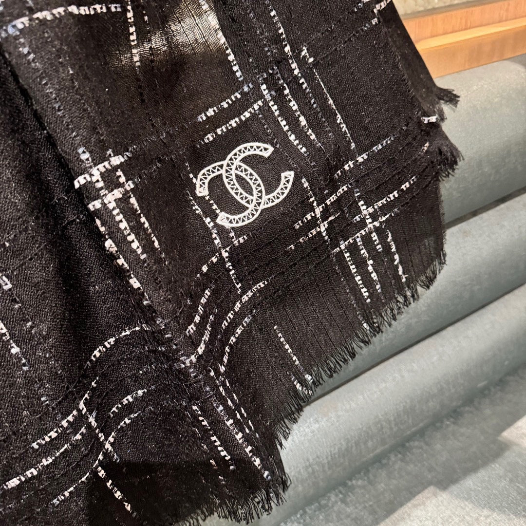 CC Scarf 200 CM In Black With White Stripes Cashmere 394656
