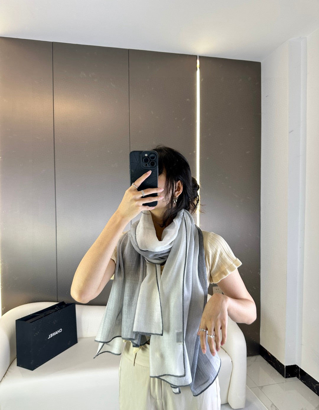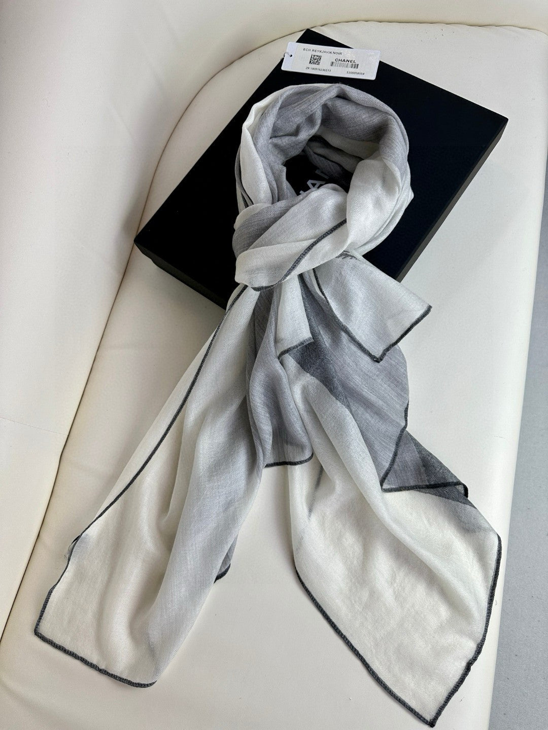 CC Scarf 200 CM In Light Grey Mix White Dark Grey Cashmere Silk 396448