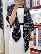 CC Square Scarf 140 CM In Black Mix White Cashmere And Silk 407280