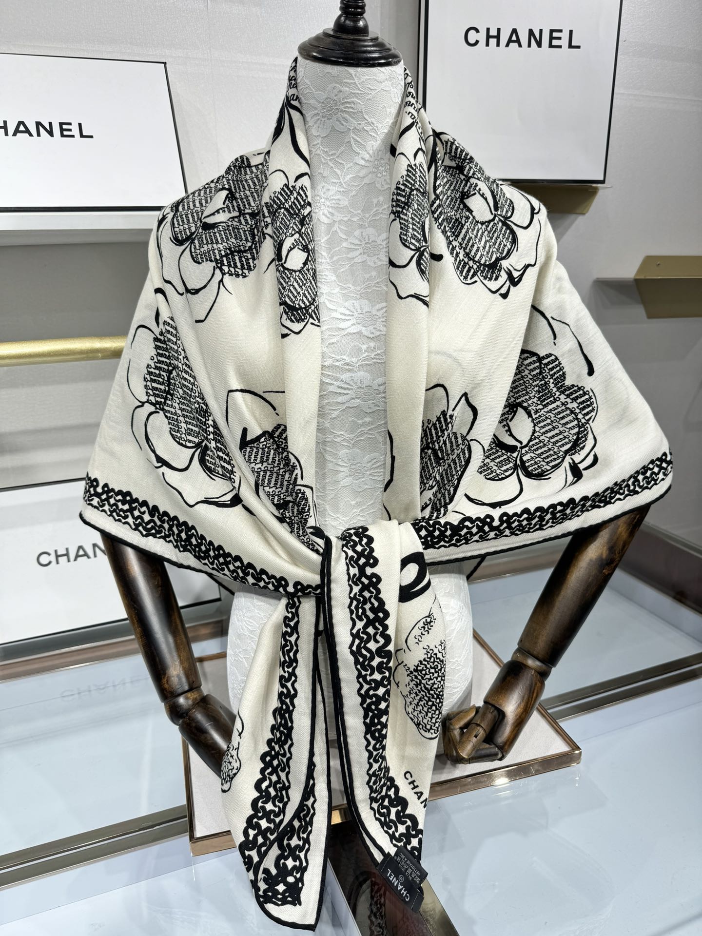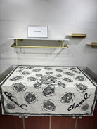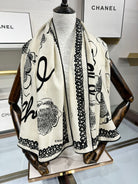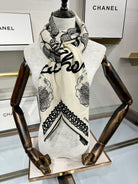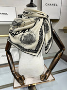 CC Square Scarf 140 CM In White Black Cashmere Silk 408419