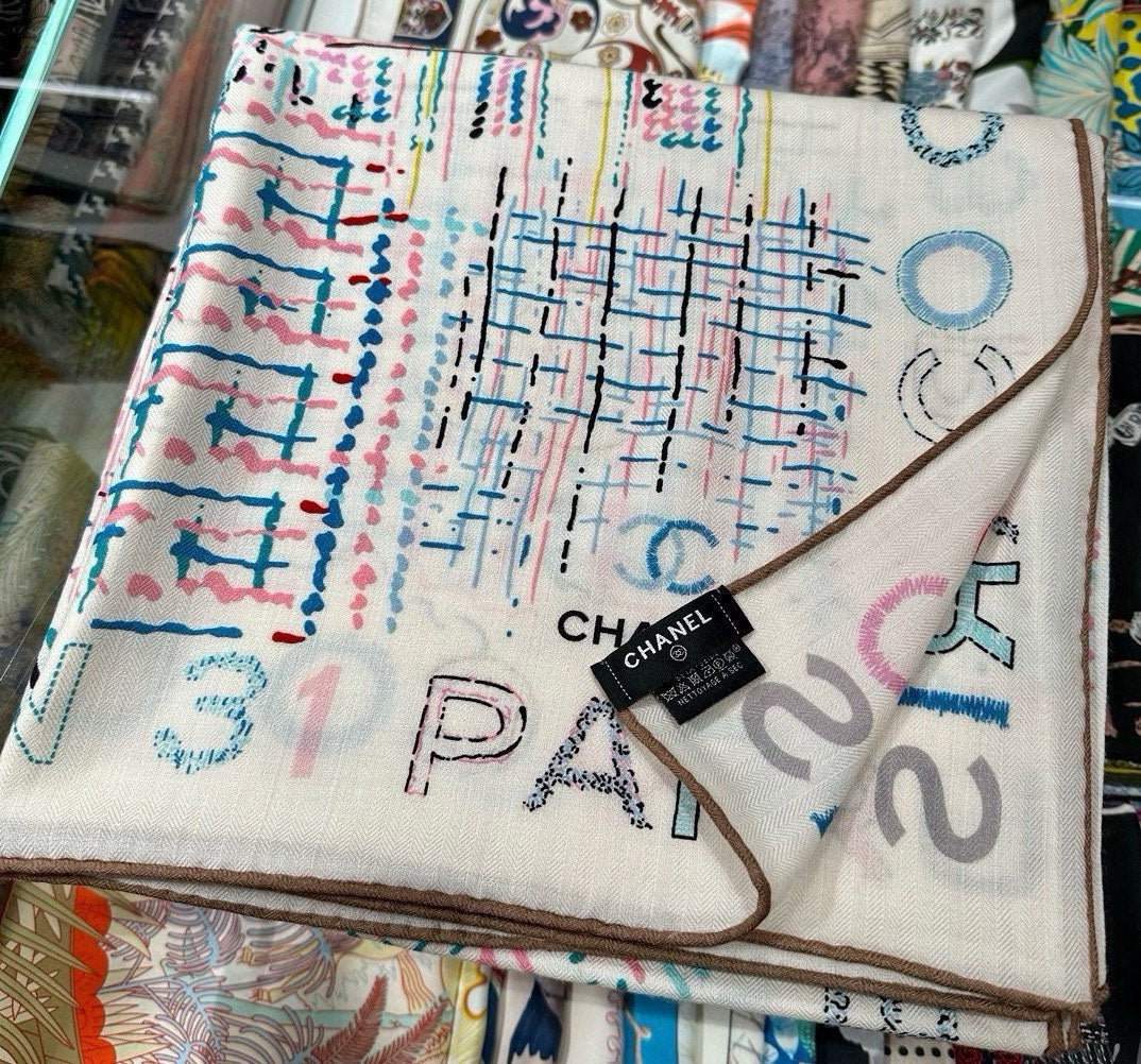 CC Square Scarf 140 CM In White Colorful Cashmere 182446