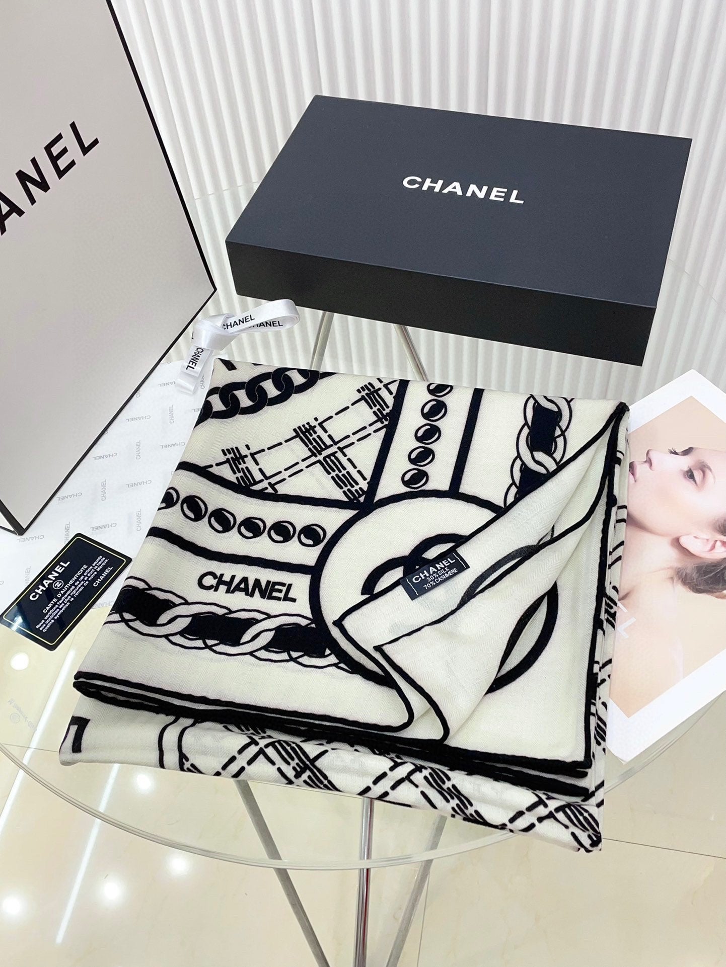 CC Square Scarf 140 CM In White Mix Black Cashmere And Silk 407279