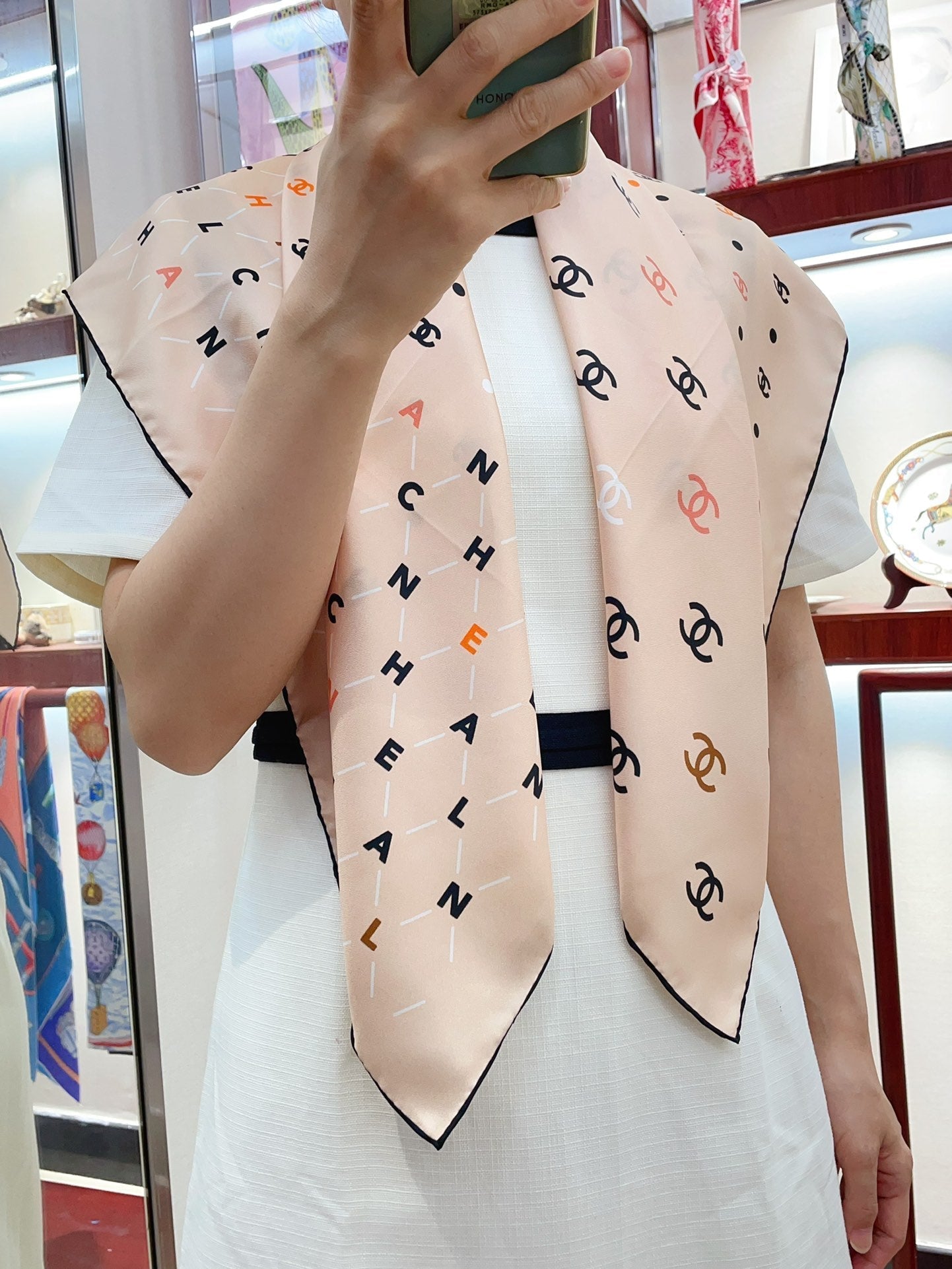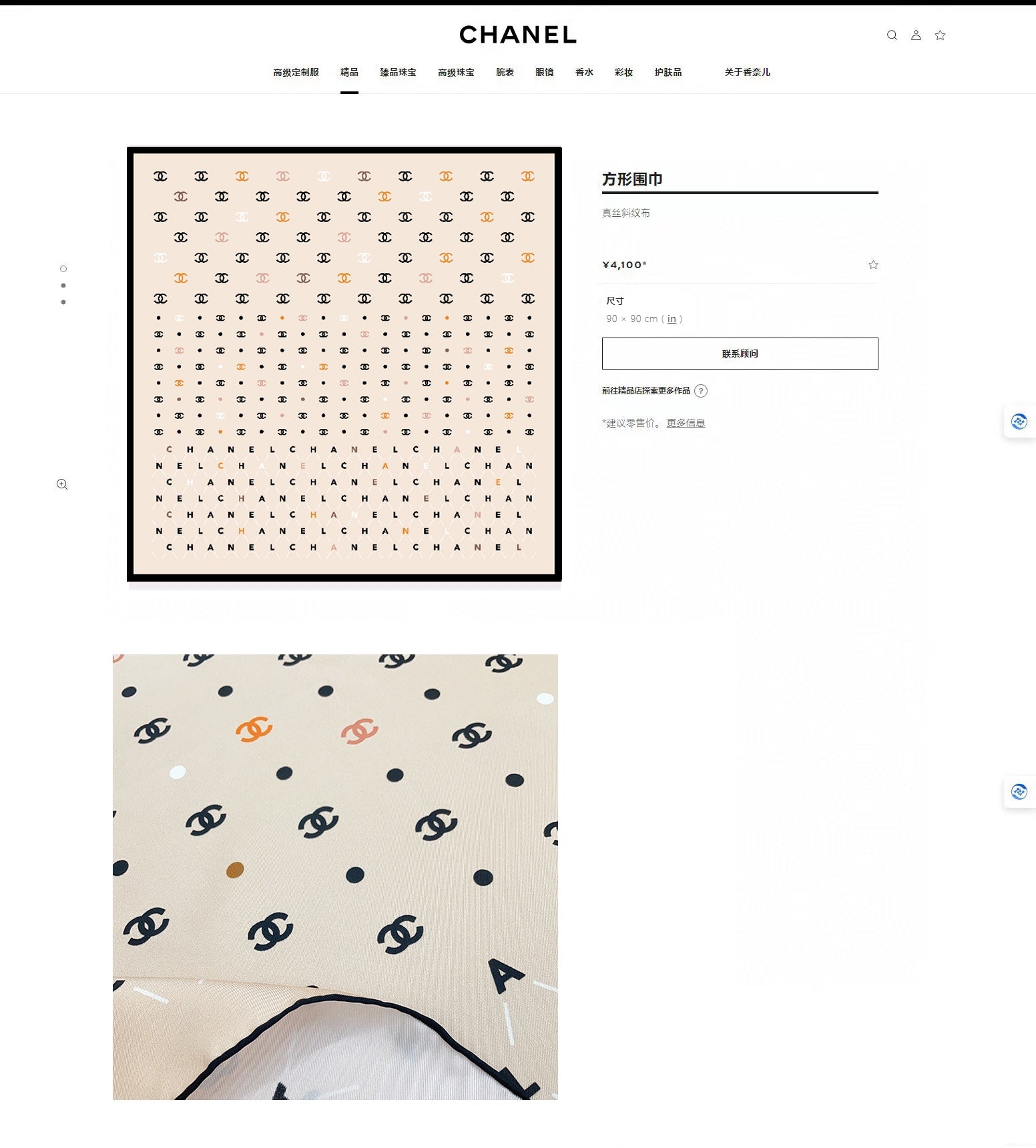 CC Square Scarf 90 CM In Beige Silk 167945