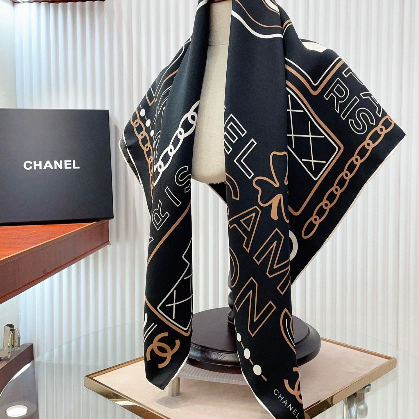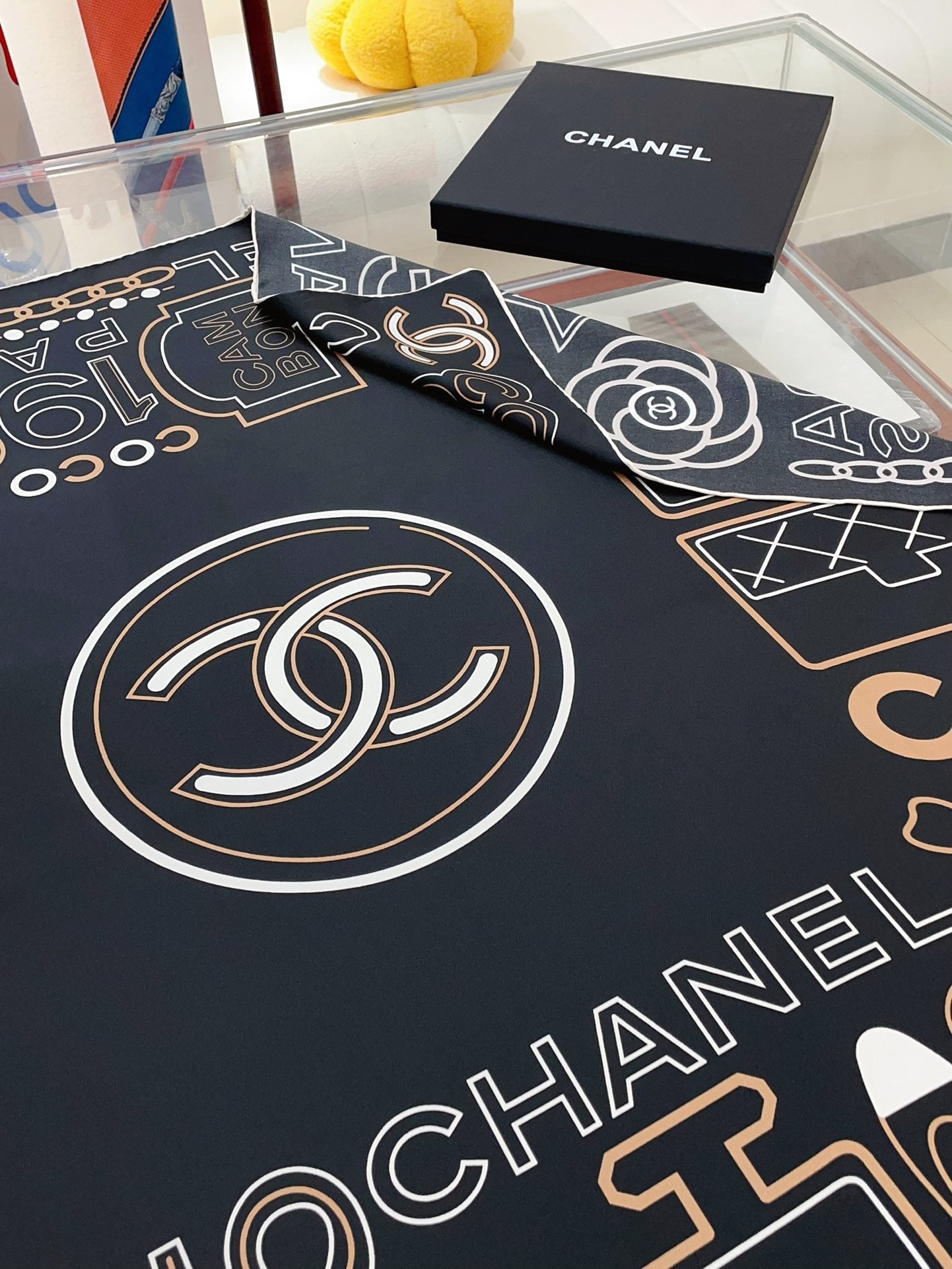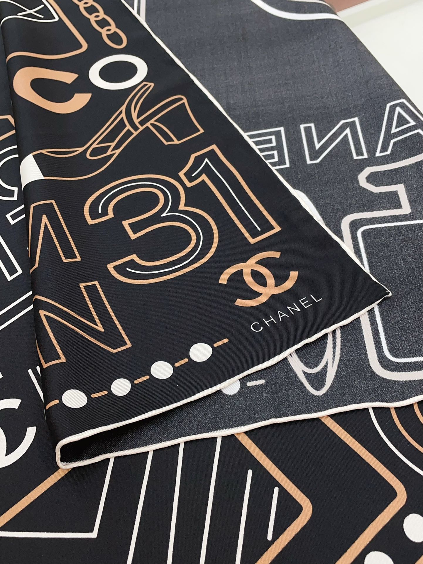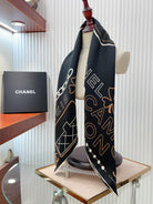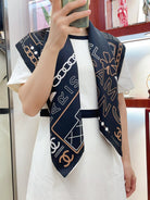 CC Square Scarf 90 CM In Black Mix Beige White Silk Twill 165002