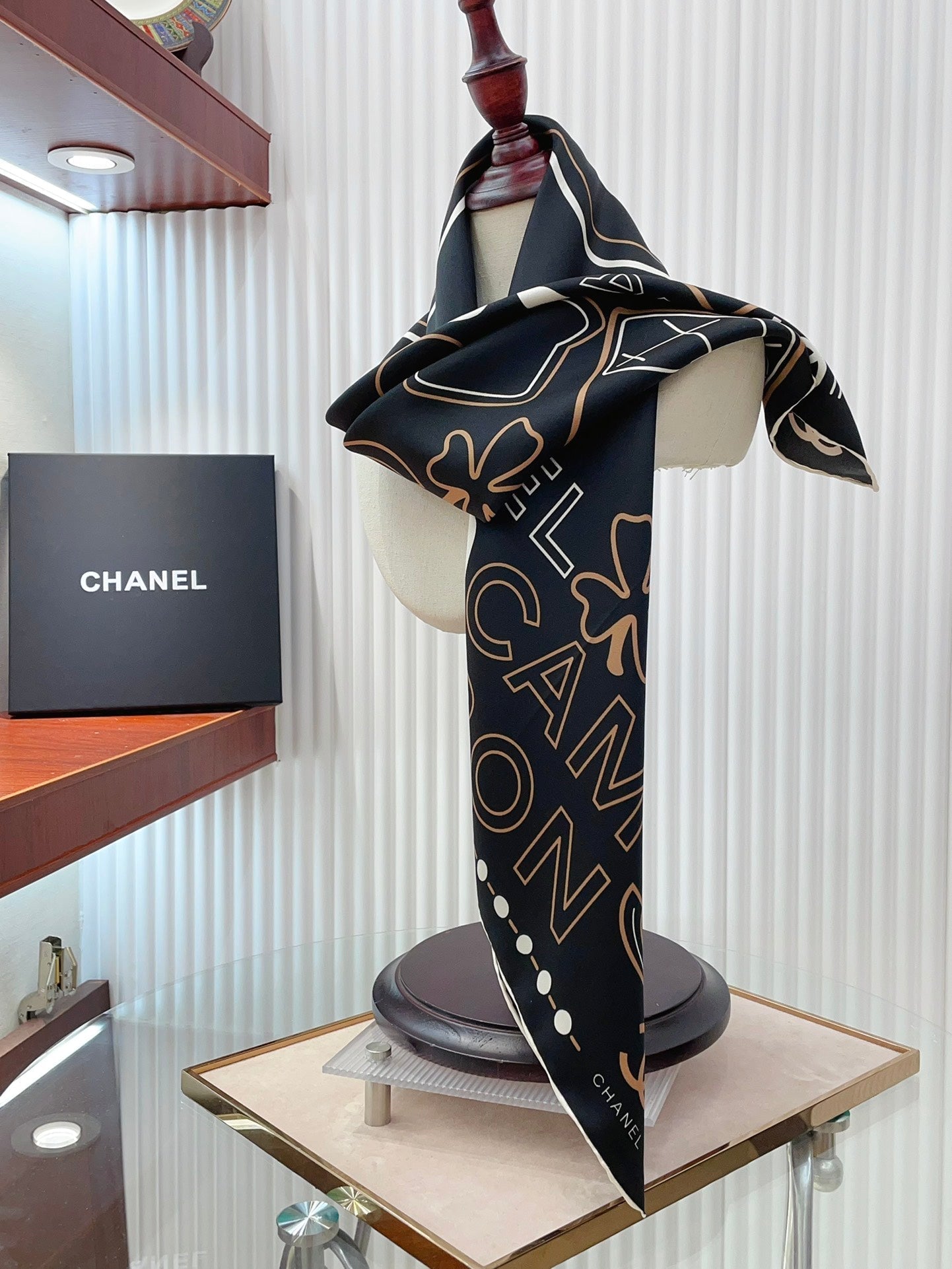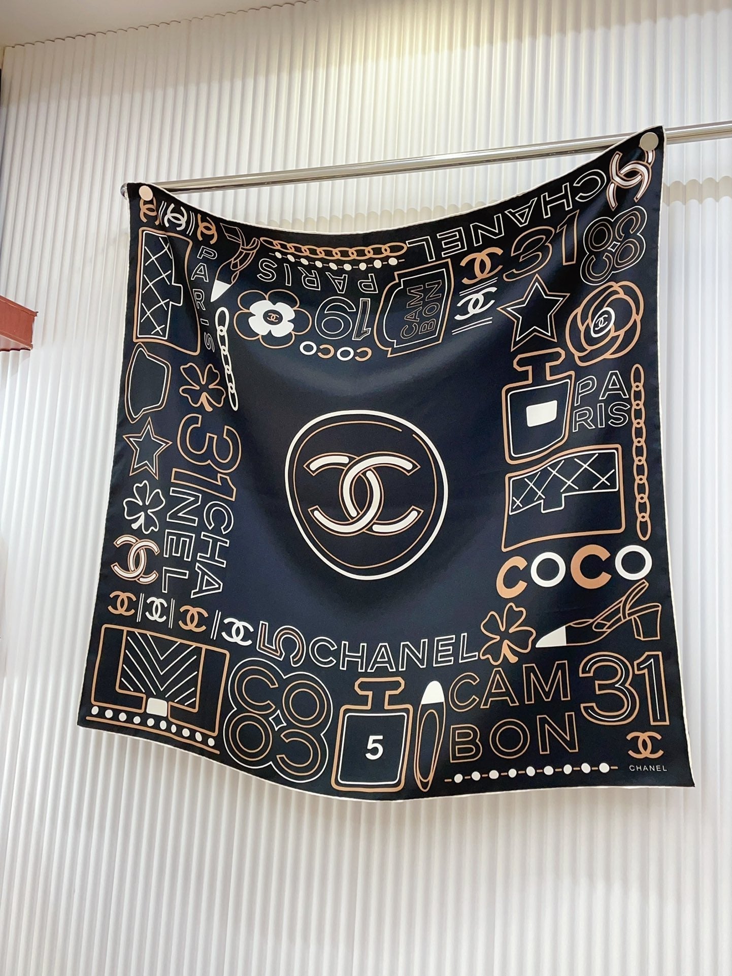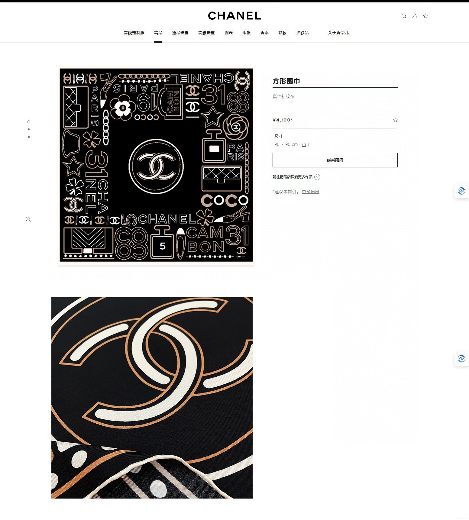CC Square Scarf 90 CM In Black Mix Beige White Silk Twill 165002