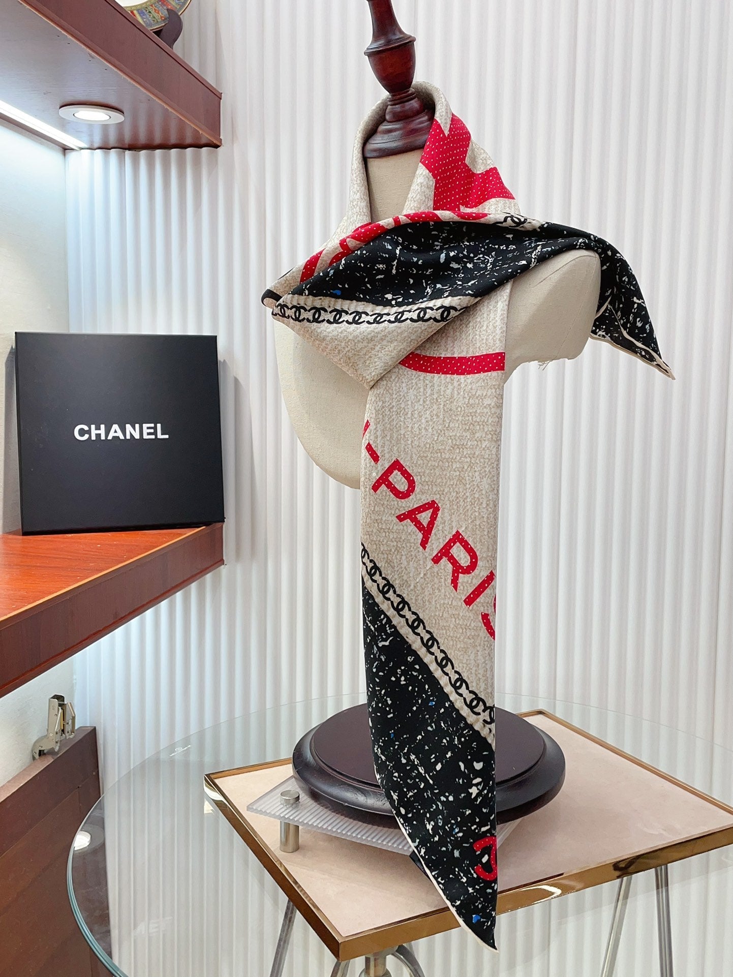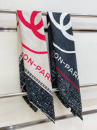 CC Square Scarf 90 CM In Black Mix Light Beige Red Cashmere Silk 172077