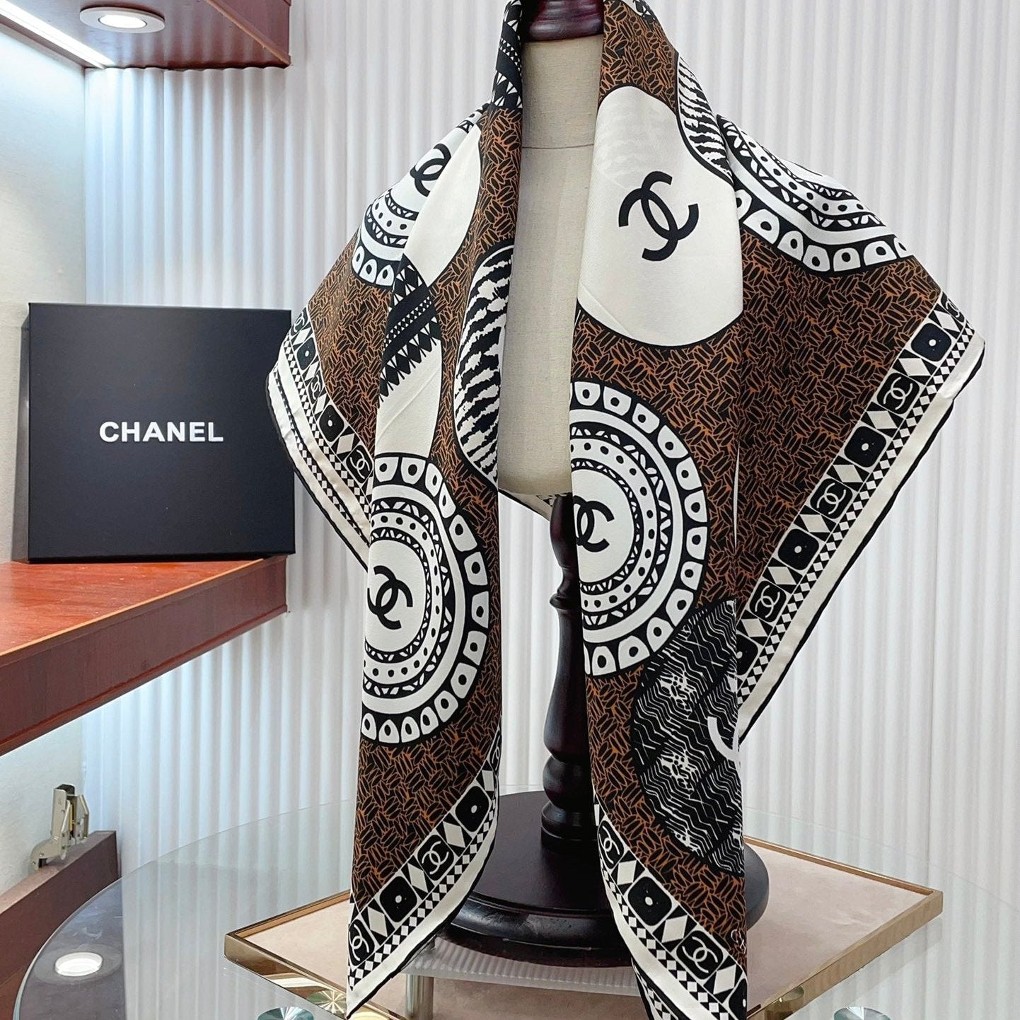 CC Square Scarf 90 CM In Brown Multi-Pattern Silk Twill 231846