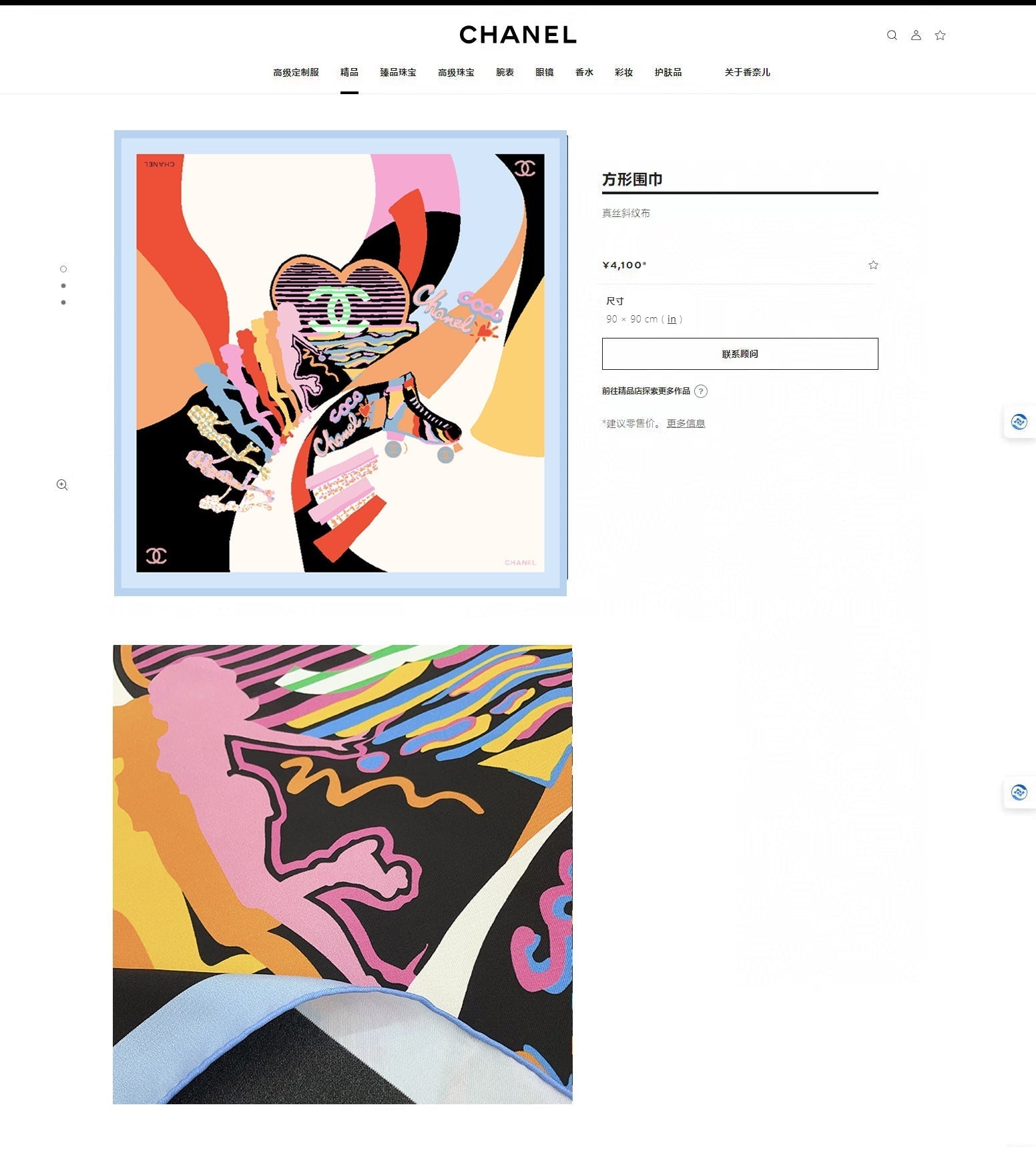 CC Square Scarf 90 CM In Colorful Silk Twill 196208