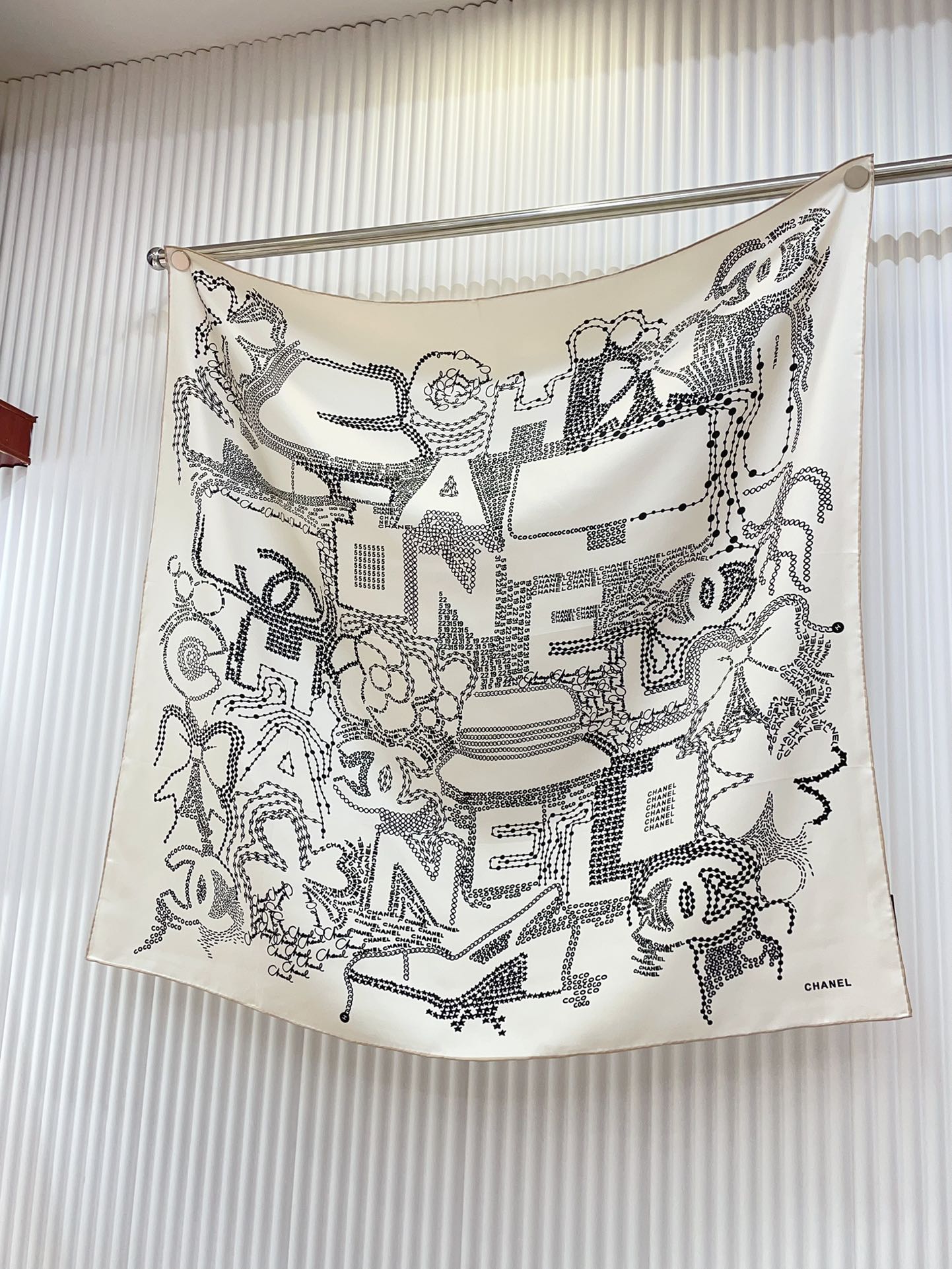 CC Square Scarf 90 CM In White Black Silk Twill 198569