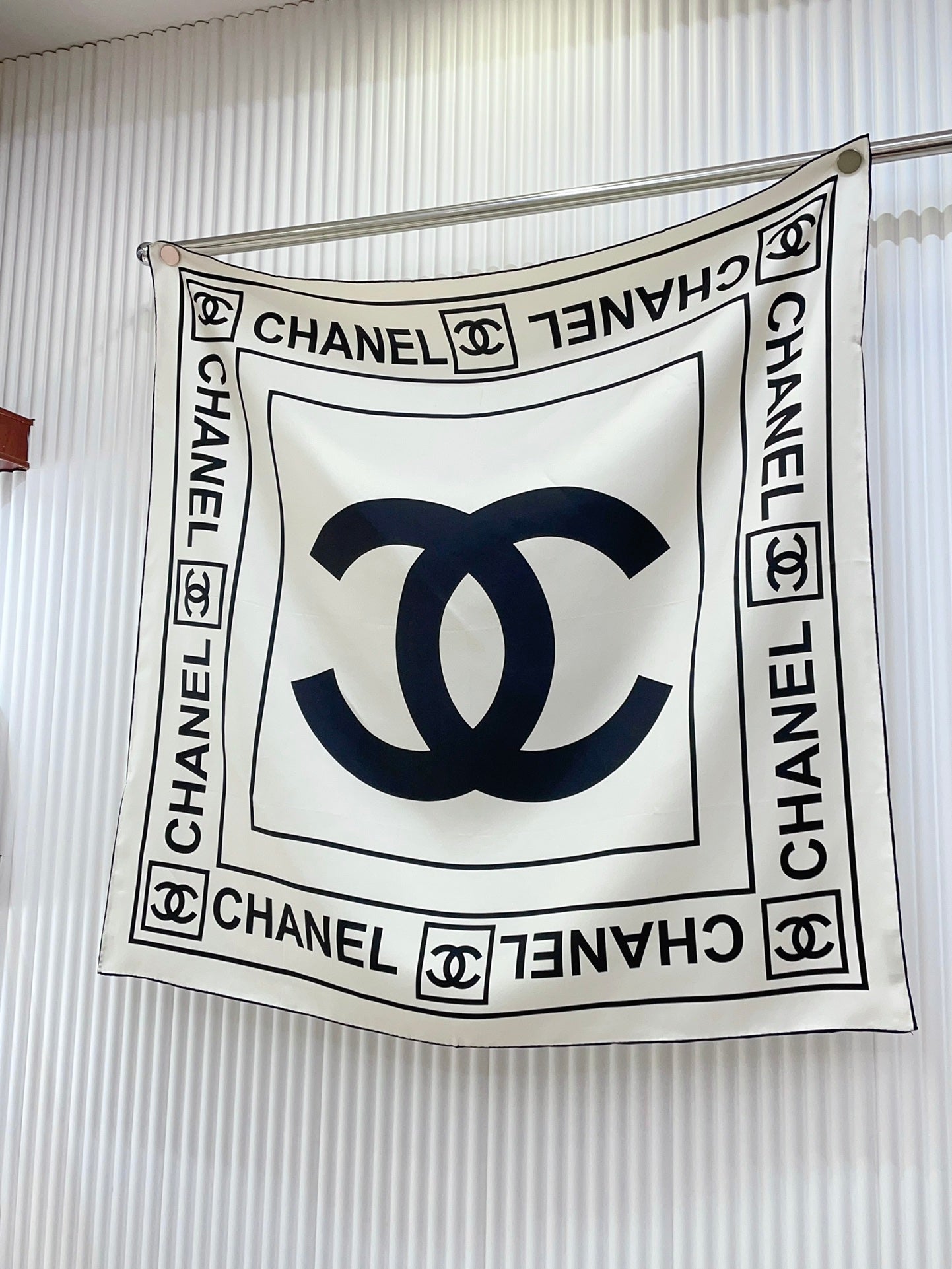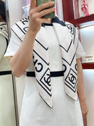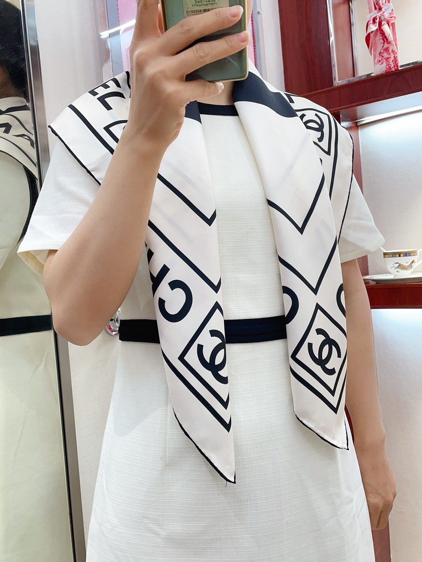 CC Square Scarf 90 CM In White Mix Black Silk Twill 167960