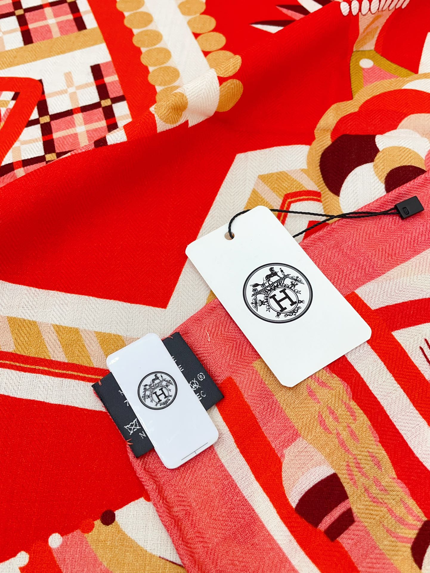Haute Parure Scarf 135 CM In Red Colorful Cashmere And Silk 324751