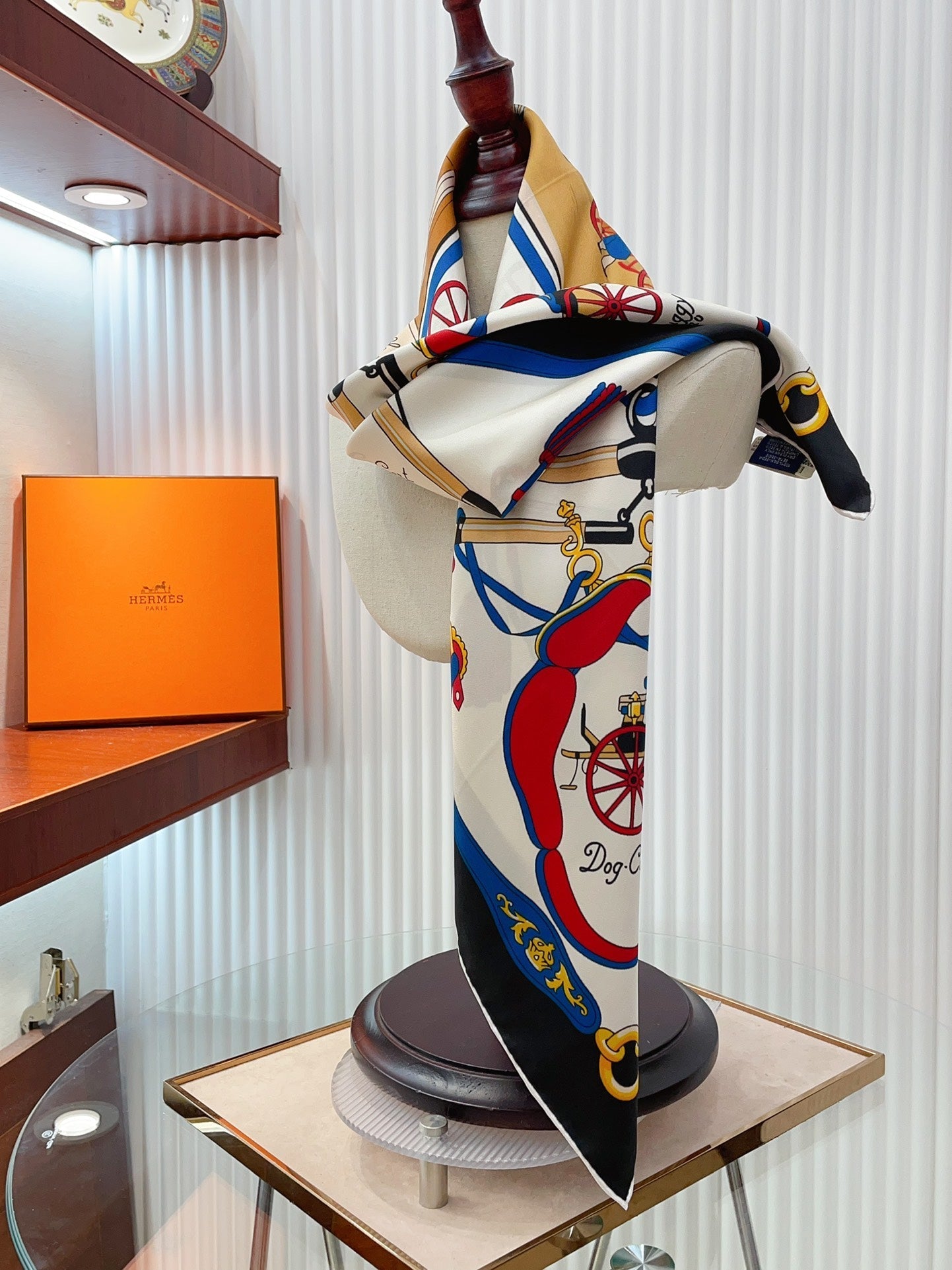 Palonniers scarf 90 CM In Black Colorful Silk Twill 321909