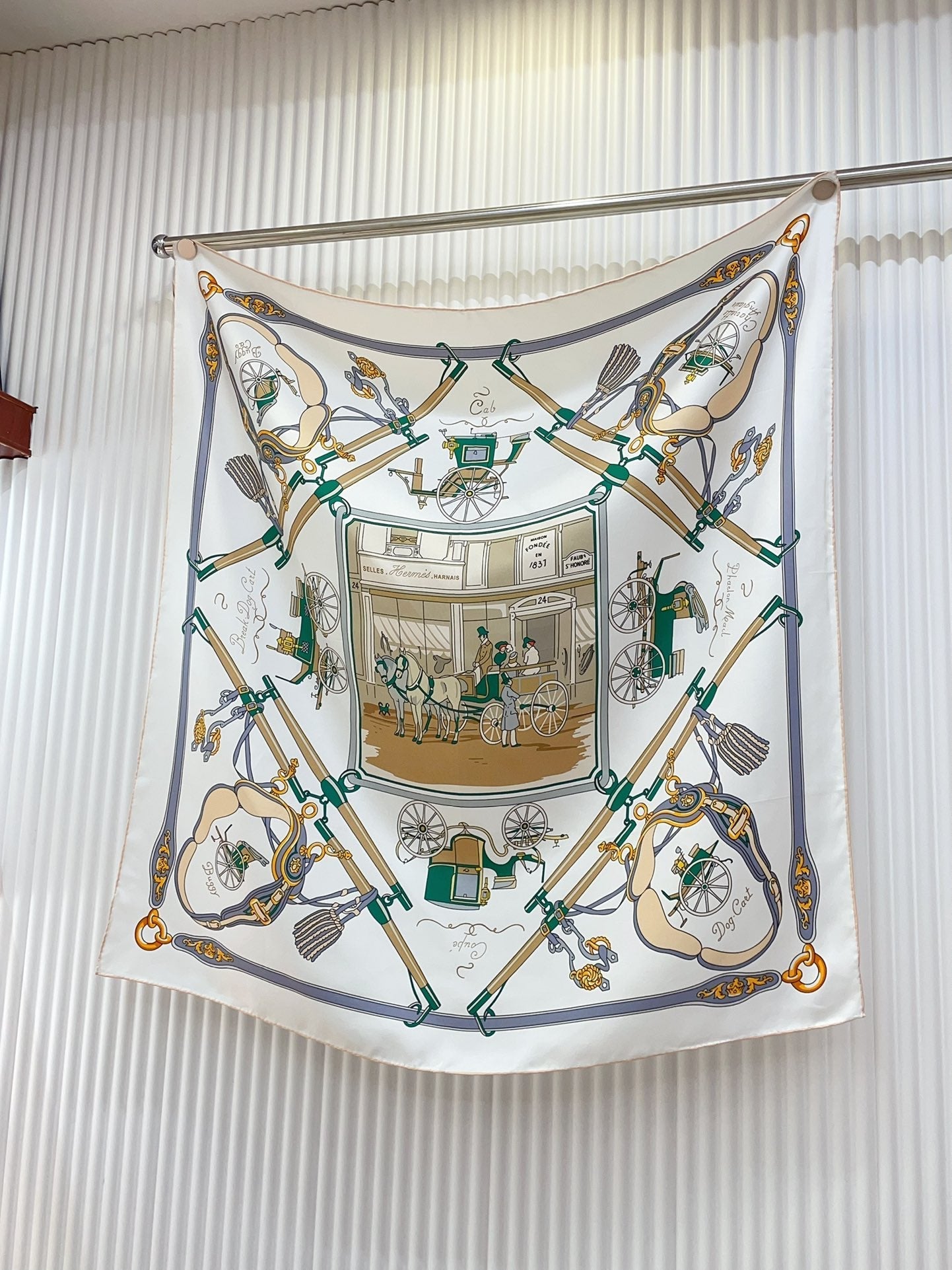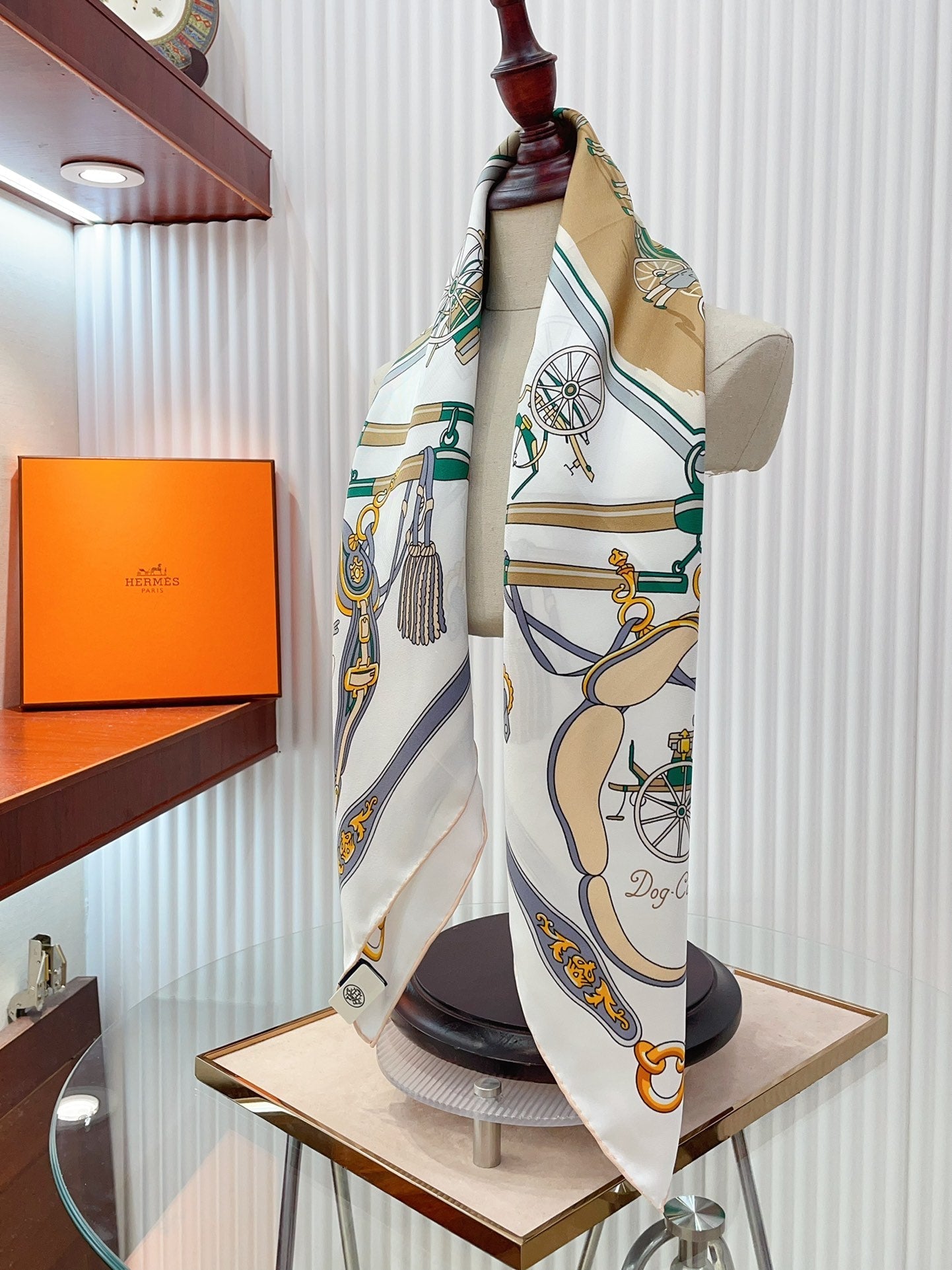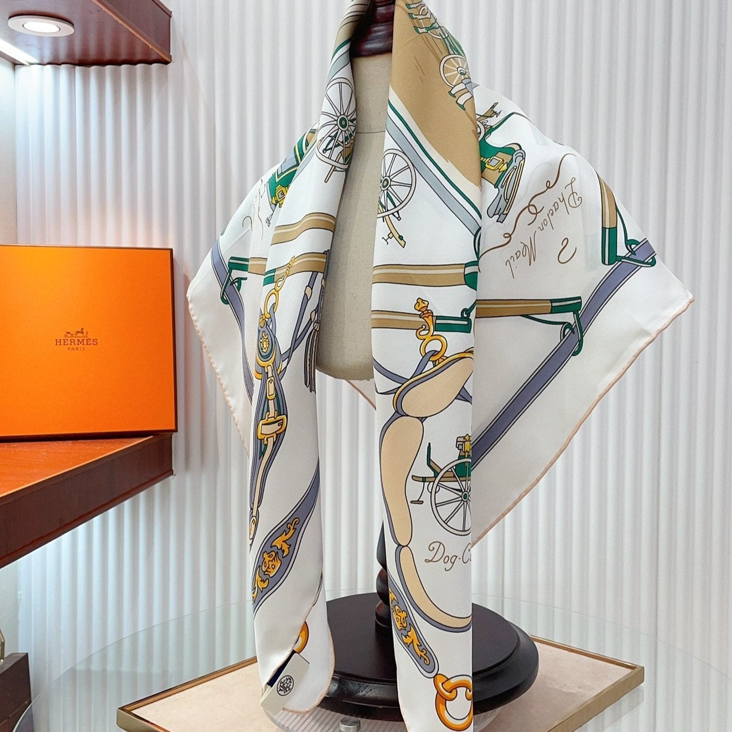 Palonniers scarf 90 CM In White Colorful Silk Twill 321911