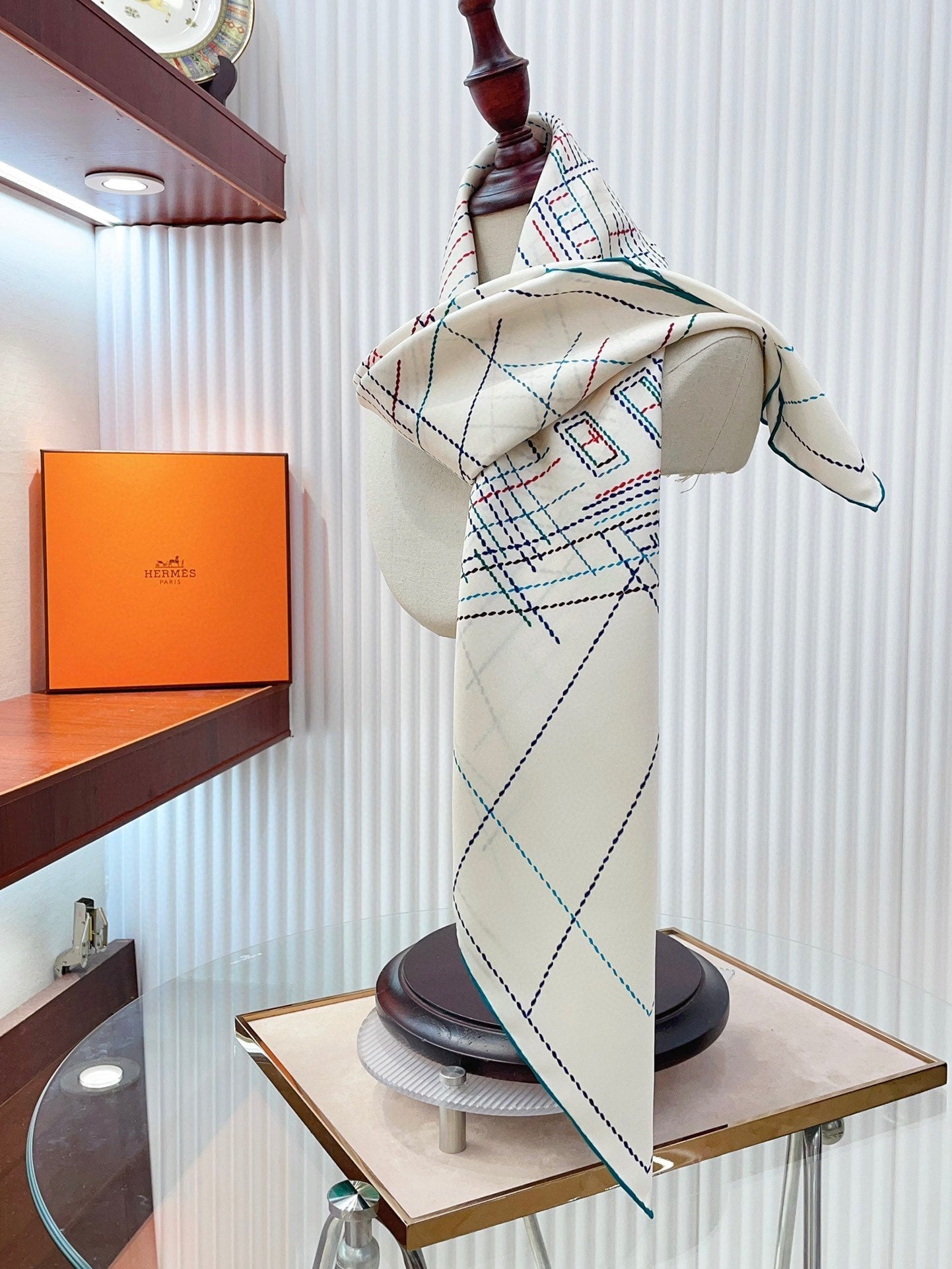 Pique Sellier Shawl 90 CM In White Colorful Silk Twill 312867