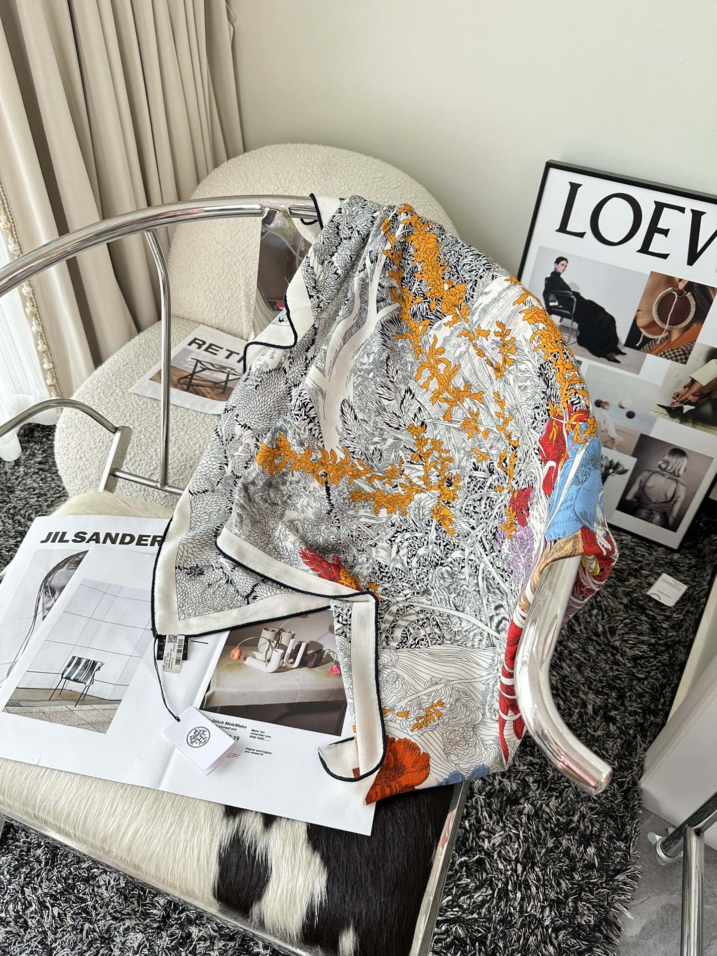 Retourala Nature Hermes Scarf 140 CM White Black Colorful Silk