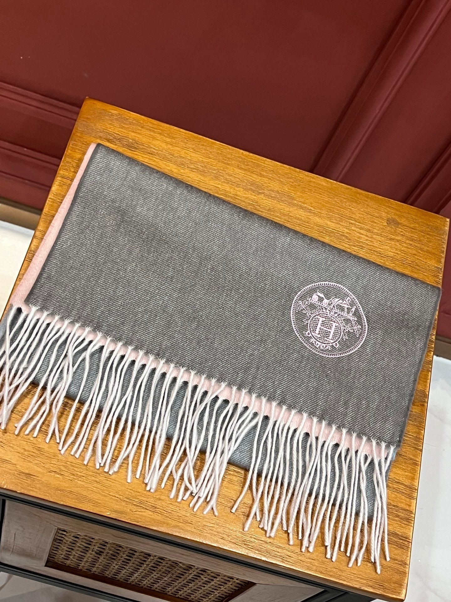 Scarf 190 CM In Grey Pink Mix Light Blue Cashmere