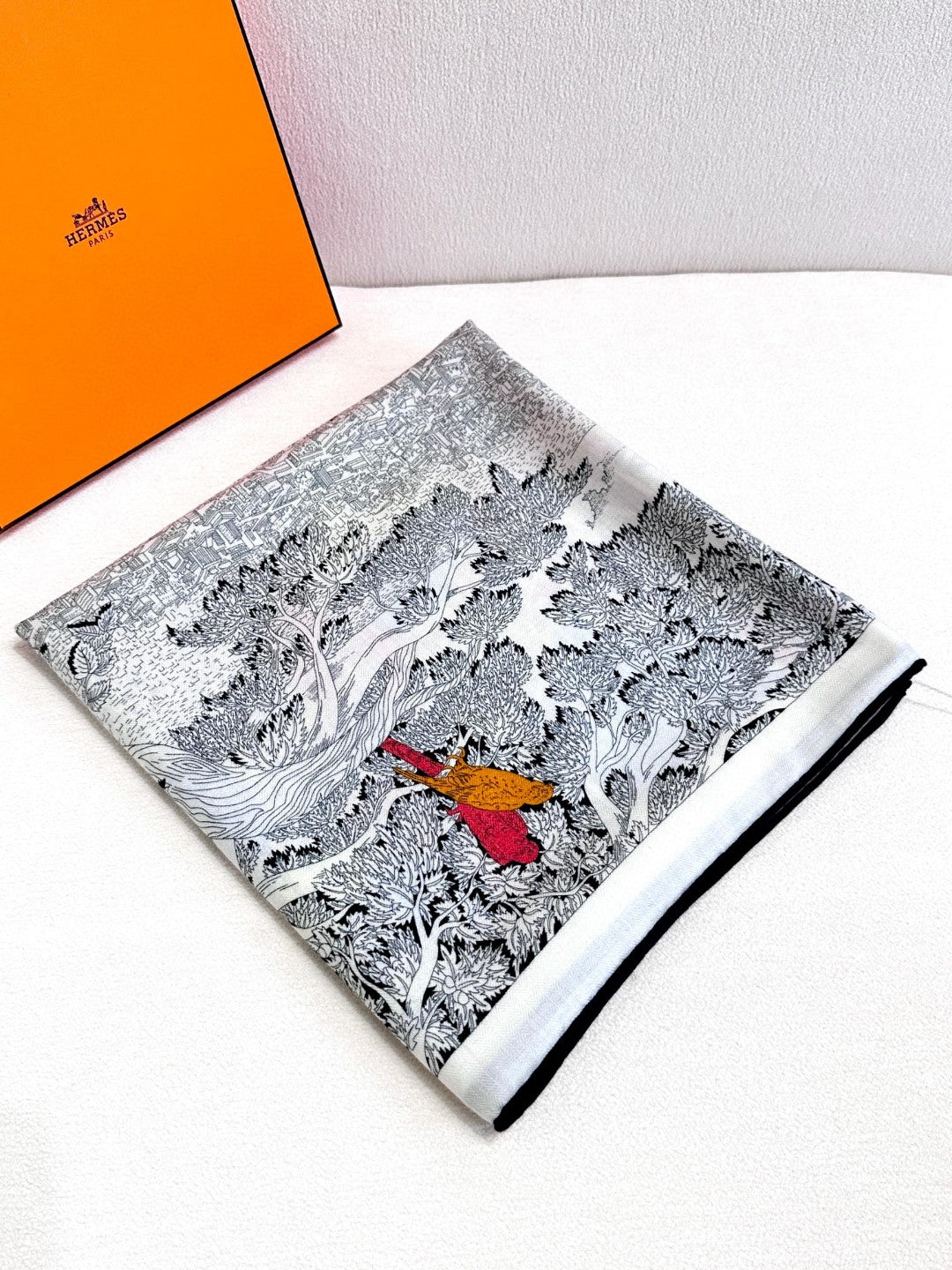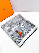 Square Scarf 135CM In Black White Colorful Cashmere And Silk