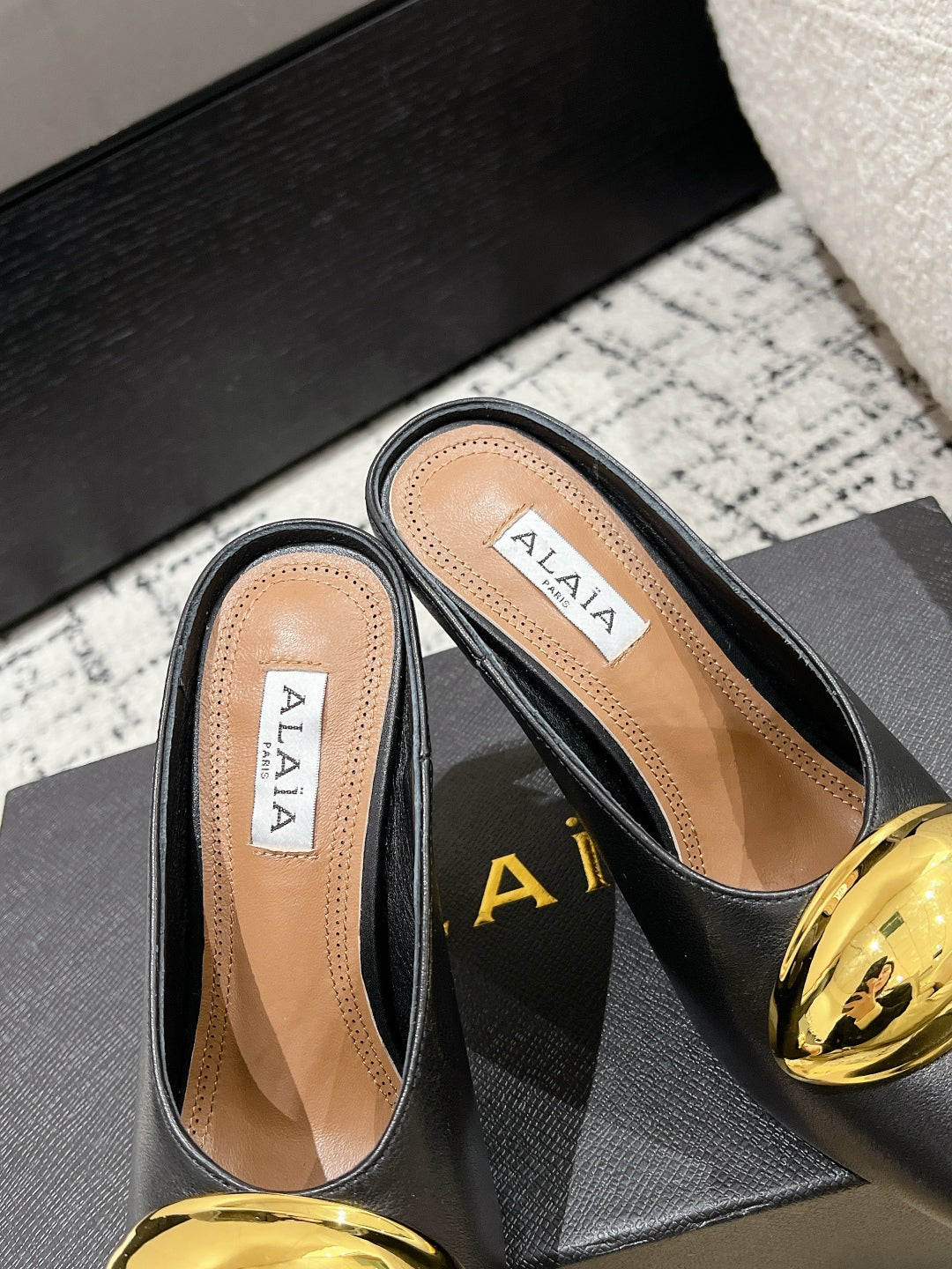 Alaia 25 Azzedine High Heels Mules With Gold Hardware Black Calfskin 293185