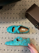 Alaia 25 Criss Cross With Stud Ballet Flats Lagoon Green Suede Sheepskin 303692