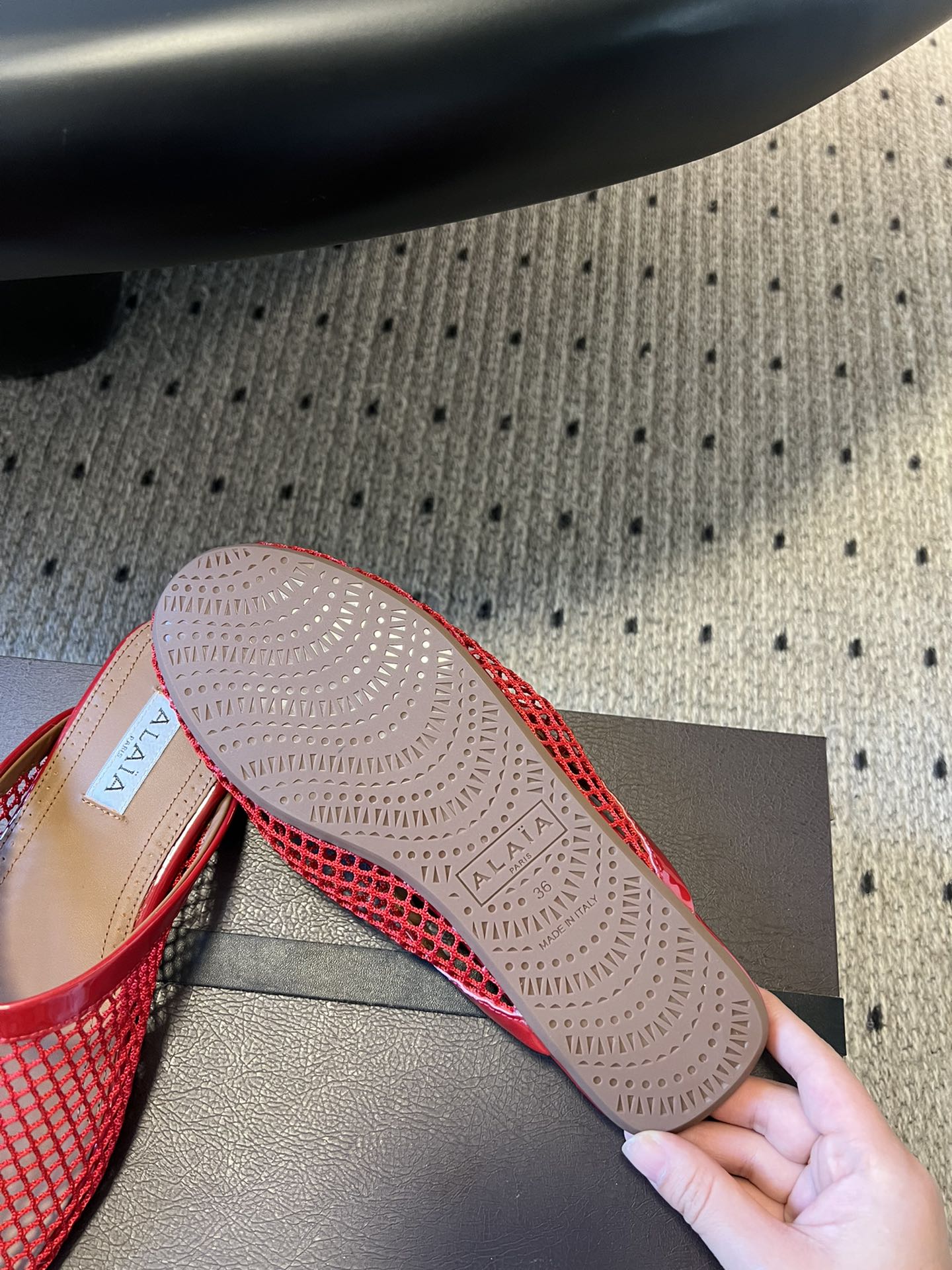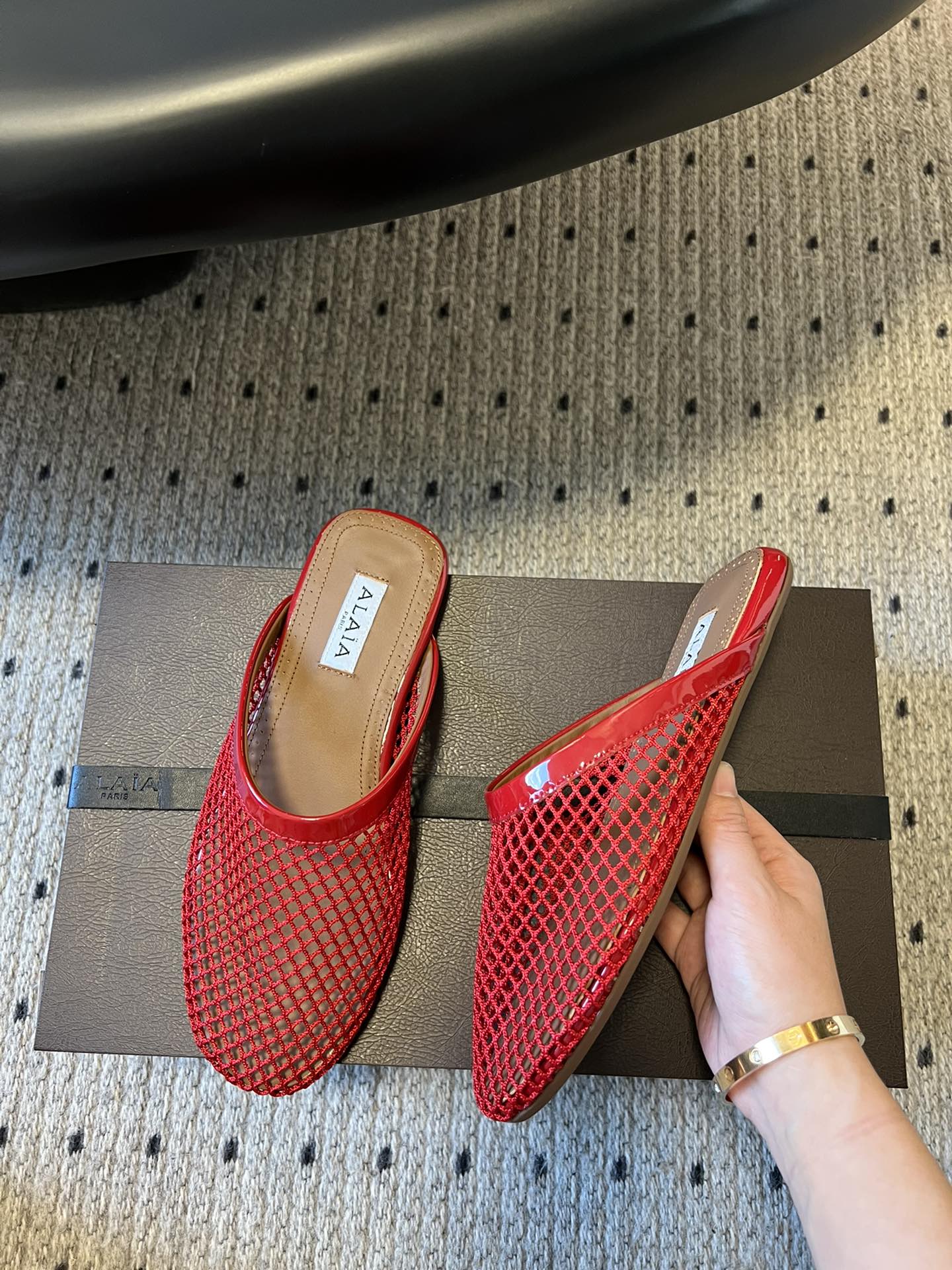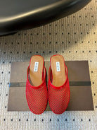Alaia 25 Fishnet Flat Mules Red Lampskin 303682