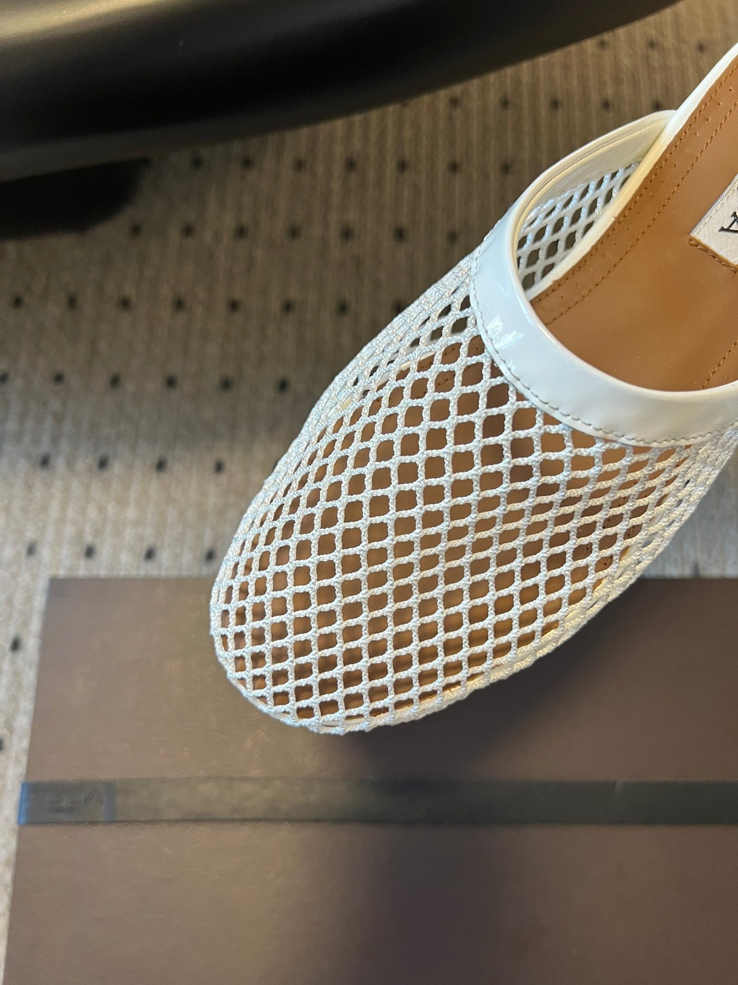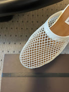 Alaia 25 Fishnet Flat Mules White Lampskin 303681