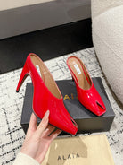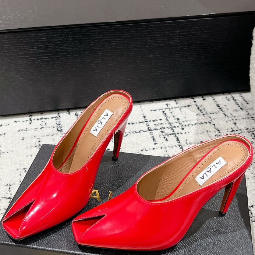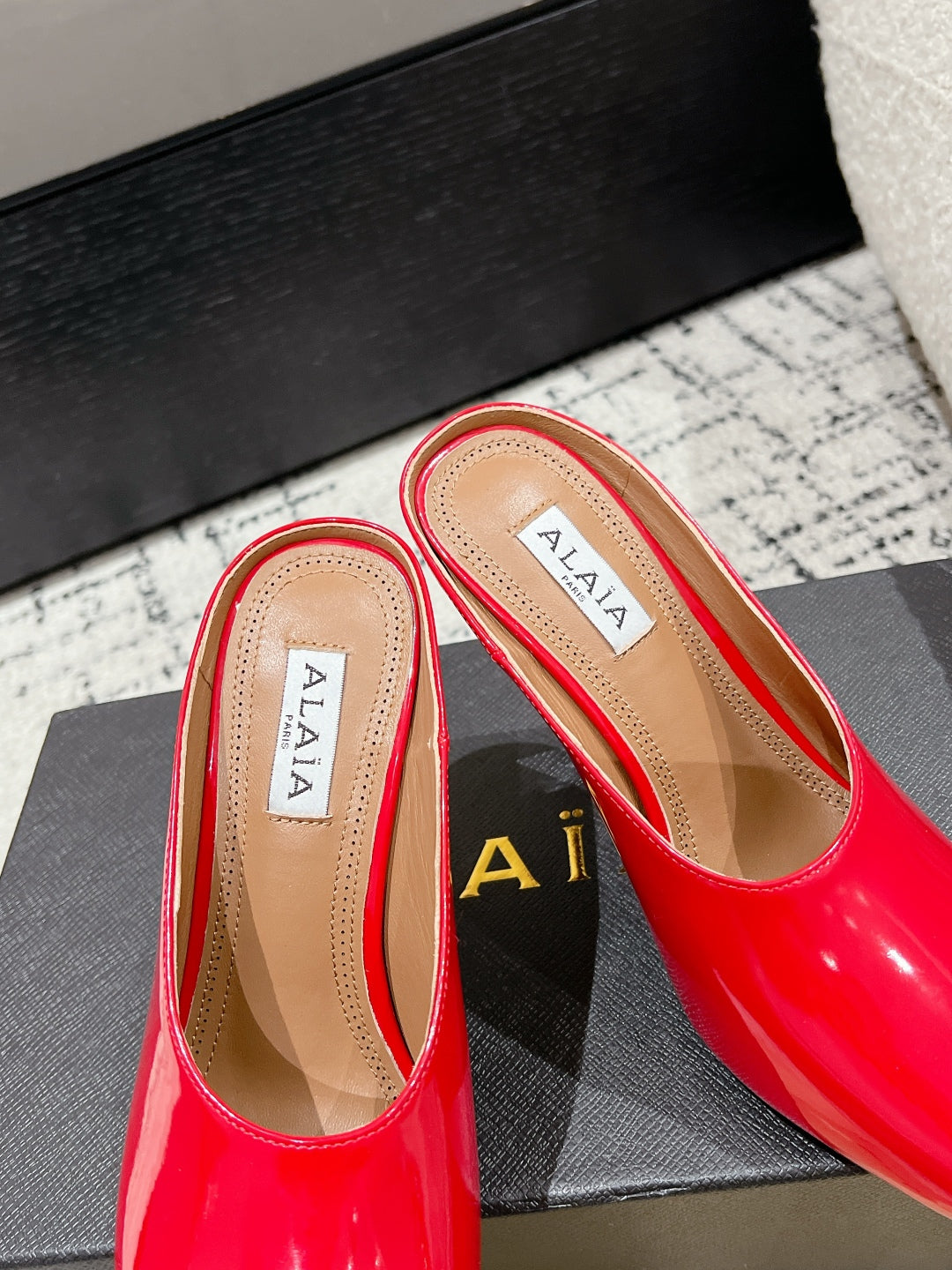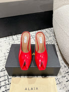 Alaia 25 Spike High Heel Mules Red Lampskin 293183