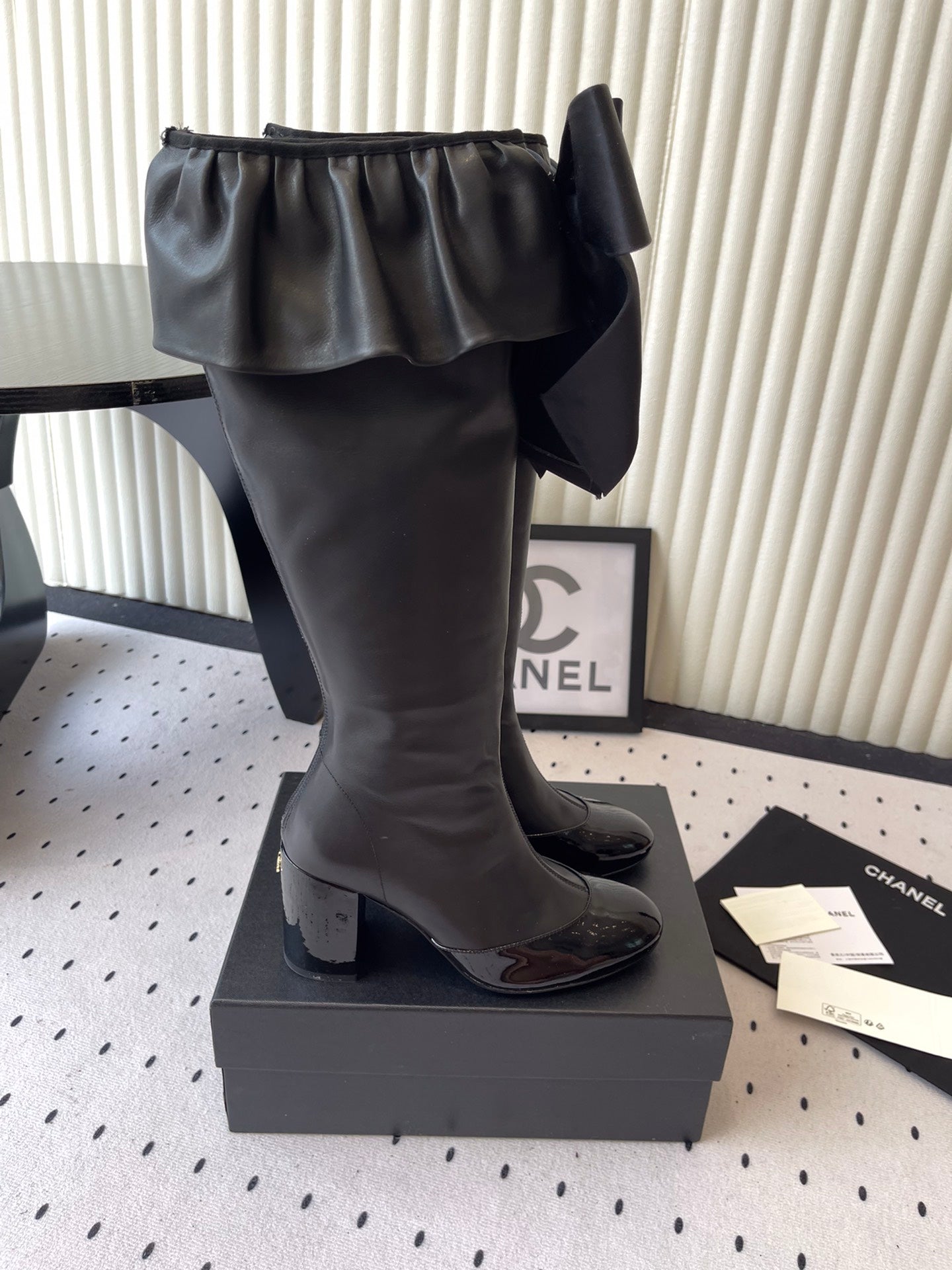 CC 25 Bow Elastic Boot Black Lambskin 514029