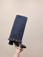 CC 25 Long Boot Navy Blue Black Denim Fabric Calfskin 515273