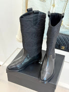 CC cowboy mid-calf boots black sheepskin denim fabric 511980
