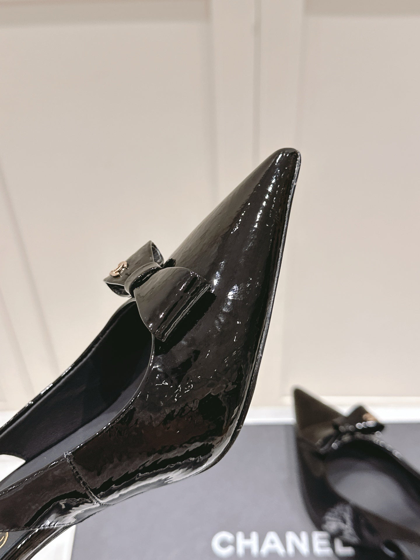 Chanel 25A Slingback Black Patent Calfskin 393073
