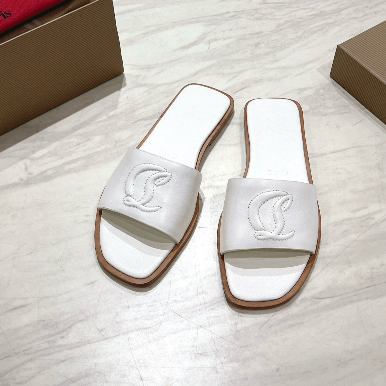 CL 25 Slippers White Top Layer High Gloss Calfskin 307497