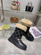 Gucci 2025 Monogram Boot Black Beige Wool Suede Calfskin 564687