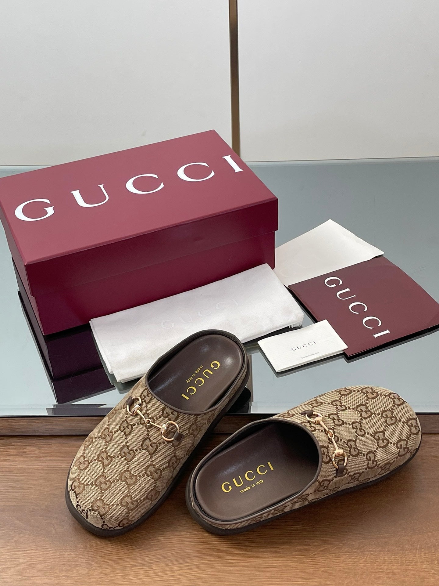 Gucci Horsebit Mule Camel And Dark Brown Canvas Leather